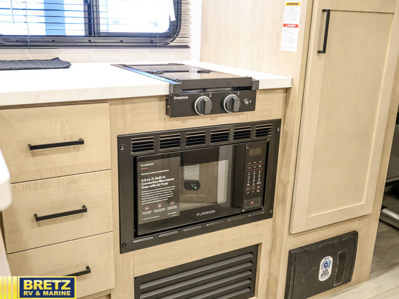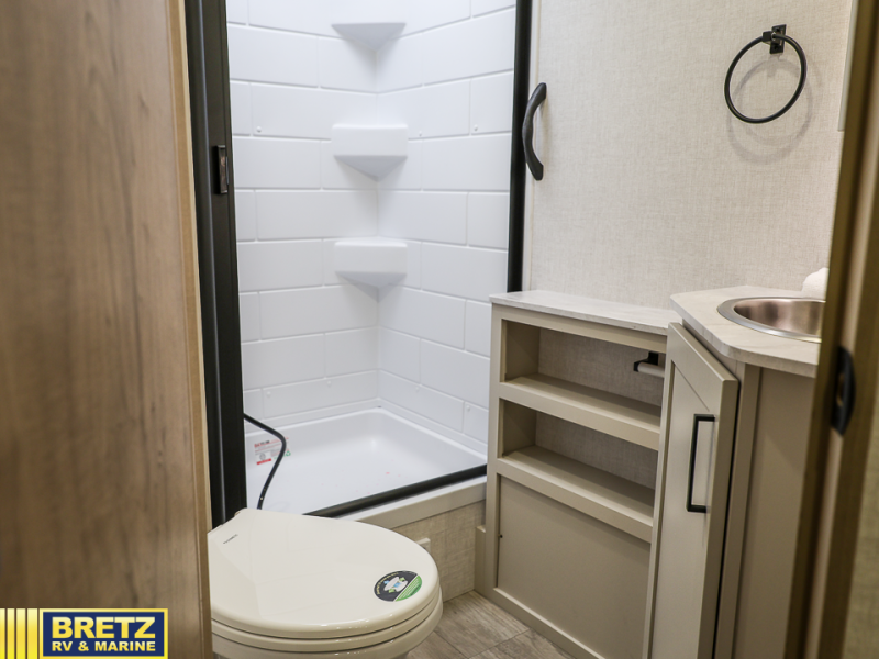 With any E-Series travel trailer by Ember RV you will enjoy a lightweight RV with all the "Essentials" needed for memorable trips in the great outdoors! Each model is constructed with durable laminated Azdel Onboard composite walls, a full walkable roof with a one-piece Tufflex PVC roofing material, and a gel-coated fiberglass exterior. The Dexter axles with E-Z lube hubs and forward self-adjusting electric brakes plus Goodyear Endurance tires will provide a smooth tow from home to campground. You will appreciate the Congoleum DiamondFlor "carpetless" interior that is easy to clean, and the hardwood framed cabinet doors will create a more residential feel. Each model includes a tankless on-demand water heater for endless hot showers and an 18,000 BTU Max Cool "Whisper Quiet" A/C, which is the largest single A/C in its class! If you're looking for off-grid capabilities, you might want to choose the optional Off-Grid Solar Package with 400 total watts of solar panels, a 2,000W Pure Sine wave inverter, and a Victron MPPT solar controller!