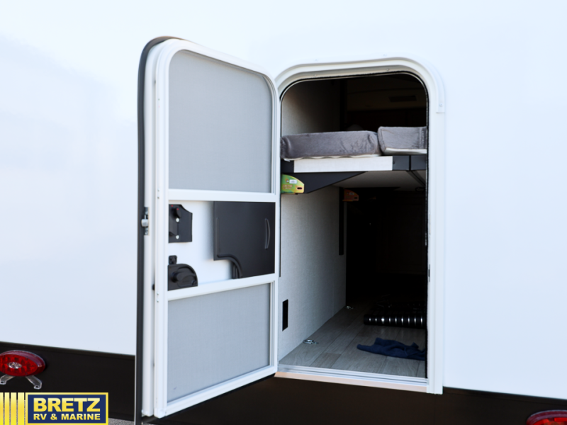 SEMI PRIVATE BEDROOM, COFFEE HUTCH, & EXTERIOR STORAGE LOCKER DOOR!