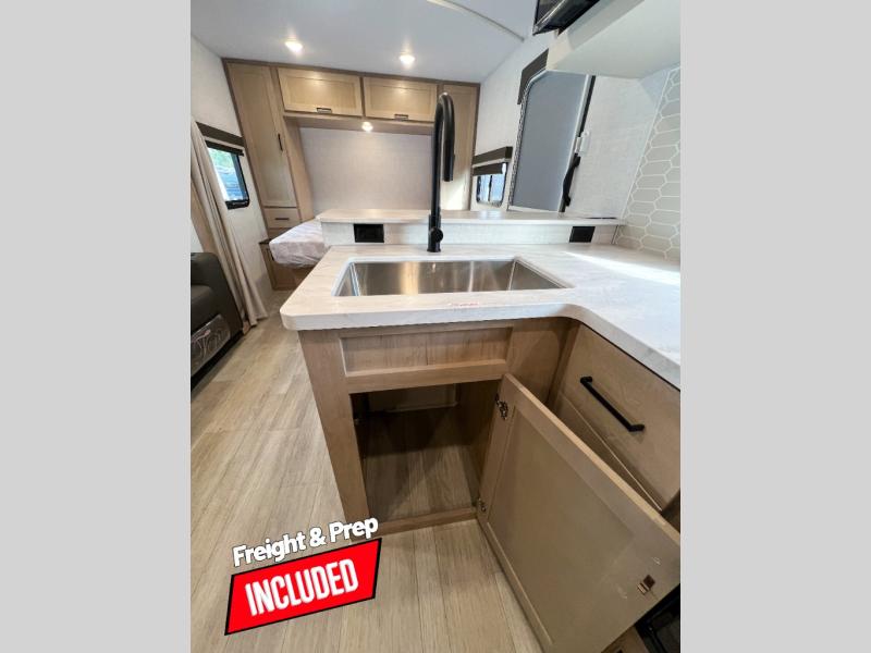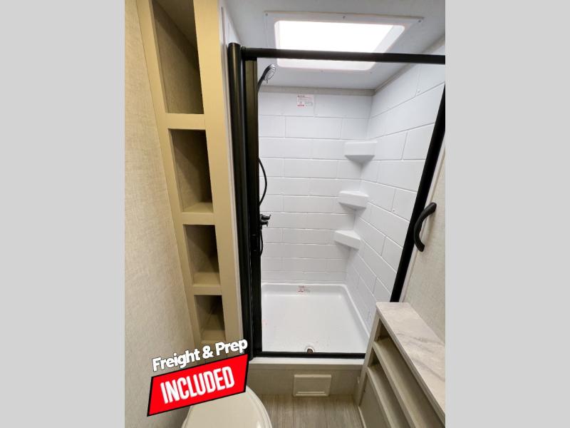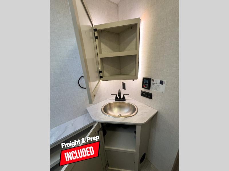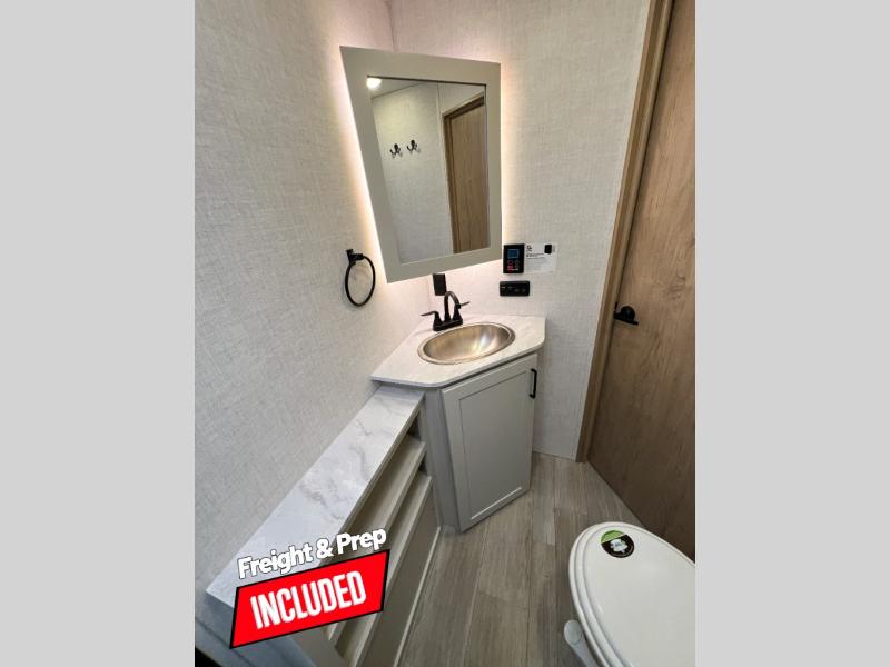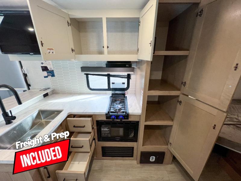 With any E-Series travel trailer by Ember RV you will enjoy a lightweight RV with all the "Essentials" needed for memorable trips in the great outdoors! Each model is constructed with durable laminated Azdel Onboard composite walls, a full walkable roof with a one-piece Tufflex PVC roofing material, and a gel-coated fiberglass exterior. The Dexter axles with E-Z lube hubs and forward self-adjusting electric brakes plus Goodyear Endurance tires will provide a smooth tow from home to campground. You will appreciate the Congoleum DiamondFlor "carpetless" interior that is easy to clean, and the hardwood framed cabinet doors will create a more residential feel. Each model includes a tankless on-demand water heater for endless hot showers and an 18,000 BTU Max Cool "Whisper Quiet" A/C, which is the largest single A/C in its class! If you're looking for off-grid capabilities, you might want to choose the optional Off-Grid Solar Package with 400 total watts of solar panels, a 2,000W Pure Sine wave inverter, and a Victron MPPT solar controller!