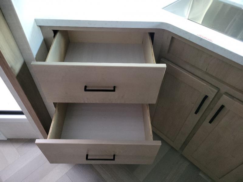 With any E-Series travel trailer by Ember RV you will enjoy a lightweight RV with all the "Essentials" needed for memorable trips in the great outdoors! Each model is constructed with durable laminated Azdel Onboard composite walls, a full walkable roof with a one-piece Tufflex PVC roofing material, and a gel-coated fiberglass exterior. The Dexter axles with E-Z lube hubs and forward self-adjusting electric brakes plus Goodyear Endurance tires will provide a smooth tow from home to campground. You will appreciate the Congoleum DiamondFlor "carpetless" interior that is easy to clean, and the hardwood framed cabinet doors will create a more residential feel. Each model includes a tankless on-demand water heater for endless hot showers and an 18,000 BTU Max Cool "Whisper Quiet" A/C, which is the largest single A/C in its class! An EmberLink Smart RV system will let you easily control features such as lights and slides and you can wash away those rainy day blues by watching the HDTV with a built-in Bluetooth AV system. If you're looking for off-grid capabilities, you might want to choose the optional Off-Grid Solar Package with 400 total watts of solar panels, a 2,000W Pure Sine wave inverter, and a Victron MPPT solar controller!