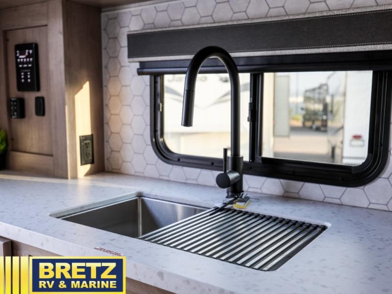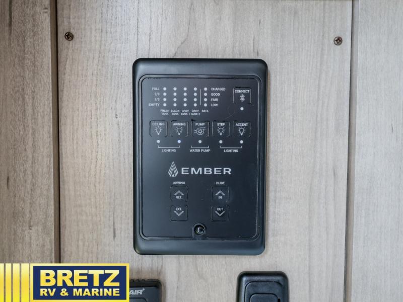 With any E-Series travel trailer by Ember RV you will enjoy a lightweight RV with all the "Essentials" needed for memorable trips in the great outdoors! Each model is constructed with durable laminated Azdel Onboard composite walls, a full walkable roof with a one-piece Tufflex PVC roofing material, and a gel-coated fiberglass exterior. The Dexter axles with E-Z lube hubs and forward self-adjusting electric brakes plus Goodyear Endurance tires will provide a smooth tow from home to campground. You will appreciate the Congoleum DiamondFlor "carpetless" interior that is easy to clean, and the hardwood framed cabinet doors will create a more residential feel. Each model includes a tankless on-demand water heater for endless hot showers and an 18,000 BTU Max Cool "Whisper Quiet" A/C, which is the largest single A/C in its class! An EmberLink Smart RV system will let you easily control features such as lights and slides and you can wash away those rainy day blues by watching the HDTV with a built-in Bluetooth AV system. If you're looking for off-grid capabilities, you might want to choose the optional Off-Grid Solar Package with 400 total watts of solar panels, a 2,000W Pure Sine wave inverter, and a Victron MPPT solar controller!
