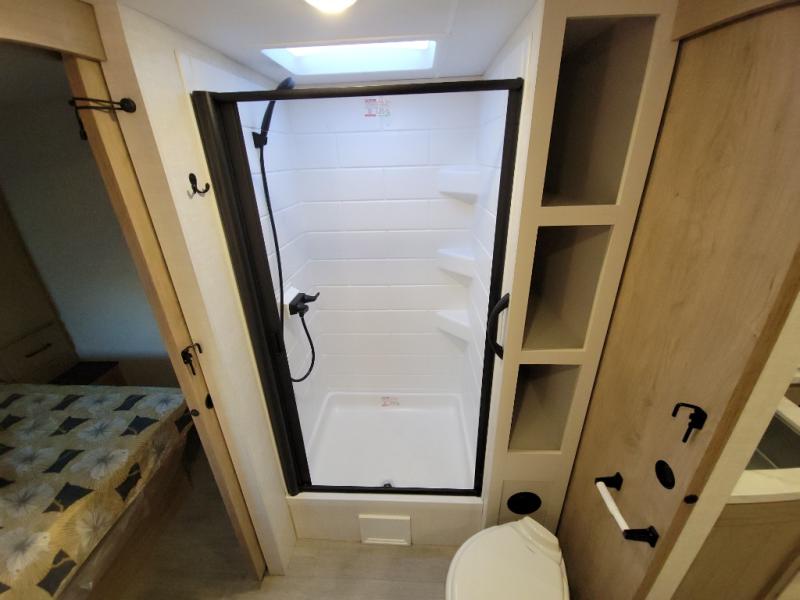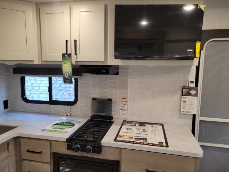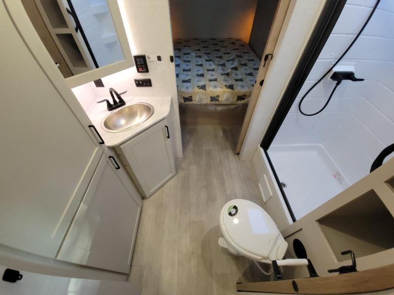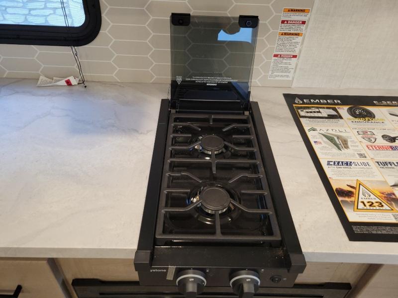 With any E-Series travel trailer by Ember RV you will enjoy a lightweight RV with all the "Essentials" needed for memorable trips in the great outdoors! Each model is constructed with durable laminated Azdel Onboard composite walls, a full walkable roof with a one-piece Tufflex PVC roofing material, and a gel-coated fiberglass exterior. The Dexter axles with E-Z lube hubs and forward self-adjusting electric brakes plus Goodyear Endurance tires will provide a smooth tow from home to campground. You will appreciate the Congoleum DiamondFlor "carpetless" interior that is easy to clean, and the hardwood framed cabinet doors will create a more residential feel. Each model includes a tankless on-demand water heater for endless hot showers and an 18,000 BTU Max Cool "Whisper Quiet" A/C, which is the largest single A/C in its class! An EmberLink Smart RV system will let you easily control features such as lights and slides and you can wash away those rainy day blues by watching the HDTV with a built-in Bluetooth AV system. If you're looking for off-grid capabilities, you might want to choose the optional Off-Grid Solar Package with 400 total watts of solar panels, a 2,000W Pure Sine wave inverter, and a Victron MPPT solar controller!