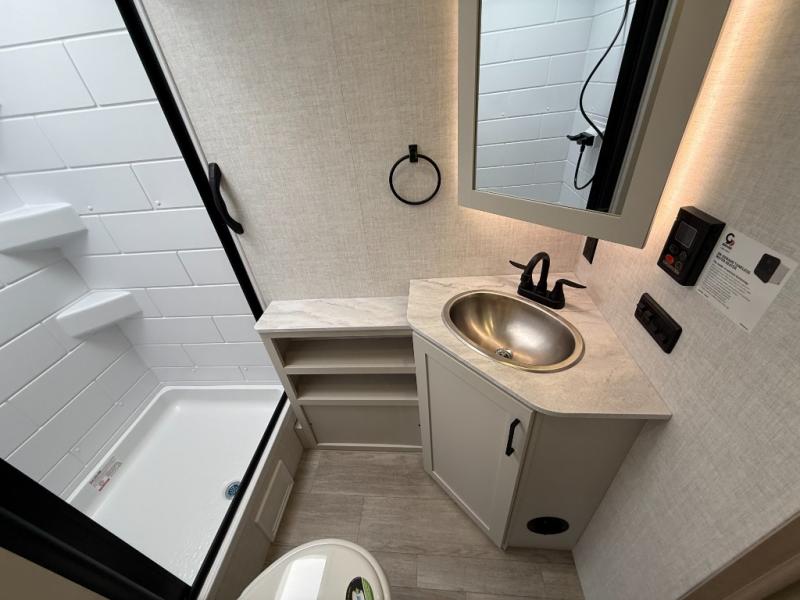 With any E-Series travel trailer by Ember RV you will enjoy a lightweight RV with all the "Essentials" needed for memorable trips in the great outdoors! Each model is constructed with durable laminated Azdel Onboard composite walls, a full walkable roof with a one-piece Tufflex PVC roofing material, and a gel-coated fiberglass exterior. The Dexter axles with E-Z lube hubs and forward self-adjusting electric brakes plus Goodyear Endurance tires will provide a smooth tow from home to campground. You will appreciate the Congoleum DiamondFlor "carpetless" interior that is easy to clean, and the hardwood framed cabinet doors will create a more residential feel. Each model includes a tankless on-demand water heater for endless hot showers and an 18,000 BTU Max Cool "Whisper Quiet" A/C, which is the largest single A/C in its class! An EmberLink Smart RV system will let you easily control features such as lights and slides and you can wash away those rainy day blues by watching the HDTV with a built-in Bluetooth AV system. If you're looking for off-grid capabilities, you might want to choose the optional Off-Grid Solar Package with 400 total watts of solar panels, a 2,000W Pure Sine wave inverter, and a Victron MPPT solar controller!