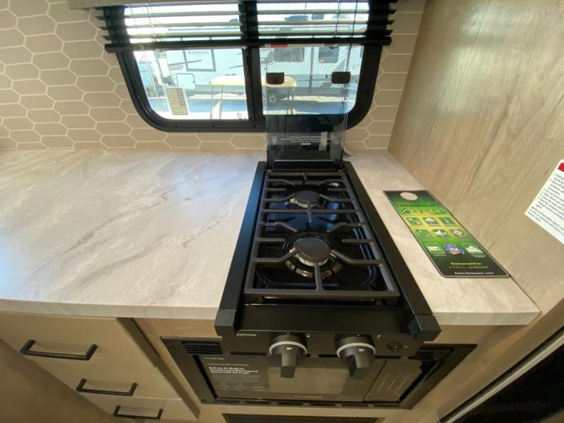 With any E-Series travel trailer by Ember RV you will enjoy a lightweight RV with all the "Essentials" needed for memorable trips in the great outdoors! Each model is constructed with durable laminated Azdel Onboard composite walls, a full walkable roof with a one-piece Tufflex PVC roofing material, and a gel-coated fiberglass exterior. The Dexter axles with E-Z lube hubs and forward self-adjusting electric brakes plus Goodyear Endurance tires will provide a smooth tow from home to campground. You will appreciate the Congoleum DiamondFlor "carpetless" interior that is easy to clean, and the hardwood framed cabinet doors will create a more residential feel. Each model includes a tankless on-demand water heater for endless hot showers and an 18,000 BTU Max Cool "Whisper Quiet" A/C, which is the largest single A/C in its class! An EmberLink Smart RV system will let you easily control features such as lights and slides and you can wash away those rainy day blues by watching the HDTV with a built-in Bluetooth AV system. If you're looking for off-grid capabilities, you might want to choose the optional Off-Grid Solar Package with 400 total watts of solar panels, a 2,000W Pure Sine wave inverter, and a Victron MPPT solar controller!
