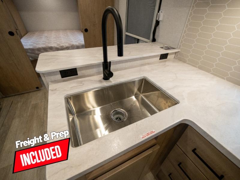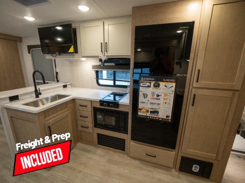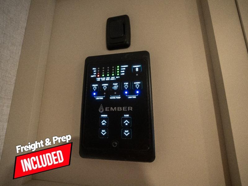 With any E-Series travel trailer by Ember RV you will enjoy a lightweight RV with all the "Essentials" needed for memorable trips in the great outdoors! Each model is constructed with durable laminated Azdel Onboard composite walls, a full walkable roof with a one-piece Tufflex PVC roofing material, and a gel-coated fiberglass exterior. The Dexter axles with E-Z lube hubs and forward self-adjusting electric brakes plus Goodyear Endurance tires will provide a smooth tow from home to campground. You will appreciate the Congoleum DiamondFlor "carpetless" interior that is easy to clean, and the hardwood framed cabinet doors will create a more residential feel. Each model includes a tankless on-demand water heater for endless hot showers and an 18,000 BTU Max Cool "Whisper Quiet" A/C, which is the largest single A/C in its class! An EmberLink Smart RV system will let you easily control features such as lights and slides and you can wash away those rainy day blues by watching the HDTV with a built-in Bluetooth AV system. If you're looking for off-grid capabilities, you might want to choose the optional Off-Grid Solar Package with 400 total watts of solar panels, a 2,000W Pure Sine wave inverter, and a Victron MPPT solar controller!