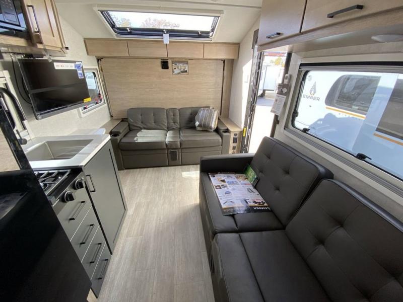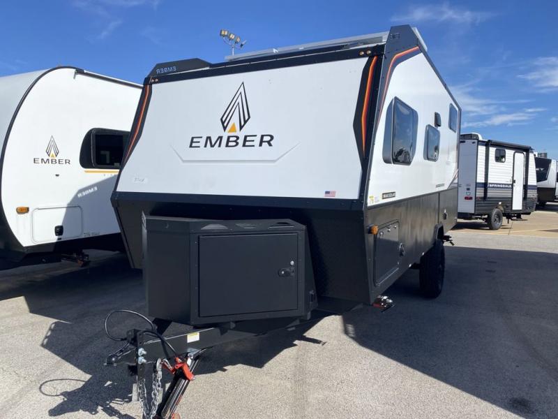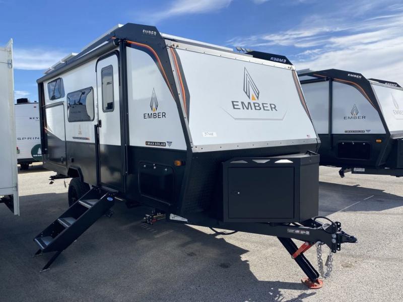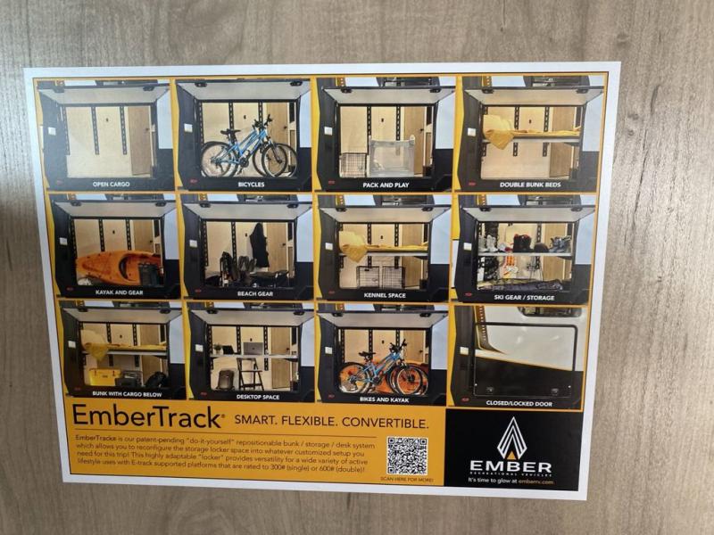 Each one of these Ember RV Overland Series travel trailers and toy hauler were built to meet the needs of today's most discerning RVers with layouts to fit couples and families! The CURT independent suspension comes with heavy-duty coil springs with dual shock absorbers on each wheel, and the 5-sided aluminum frame construction is sure to hold up through whatever adventure you throw its way. Laminated Azdel Onboard composite walls and rooftop prevent rotting or molding of the unit. Their chic interior design comes with structural composite flooring that is durable and easy to clean, dual pane caravan windows with integrated thermal shades/screens for added privacy, and an EmberLink smart RV control system to use at the touch of a finger. The Off-Grid Solar package lets you go further into the woods and the Safety First package helps you arrive safely to each destination.