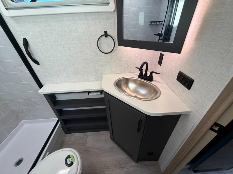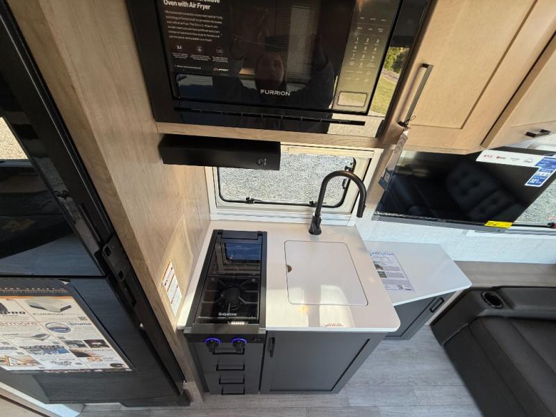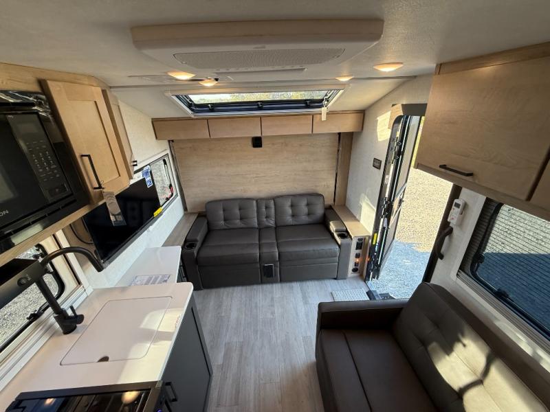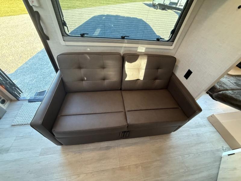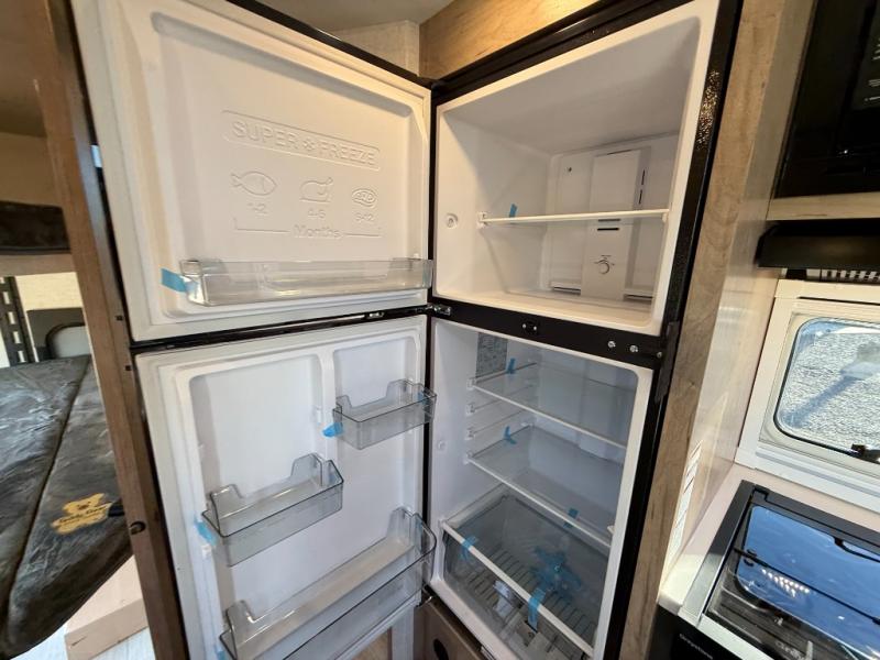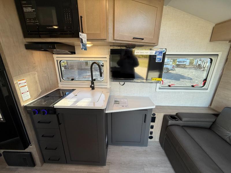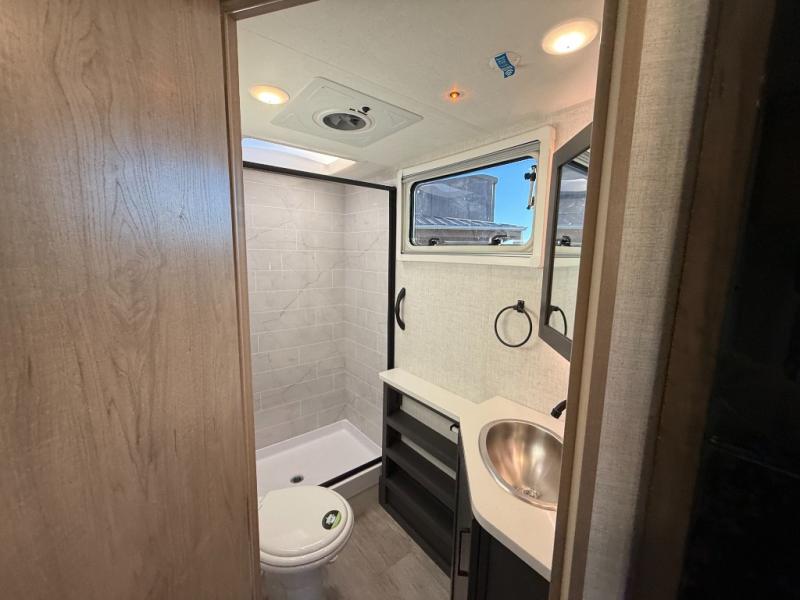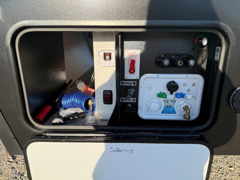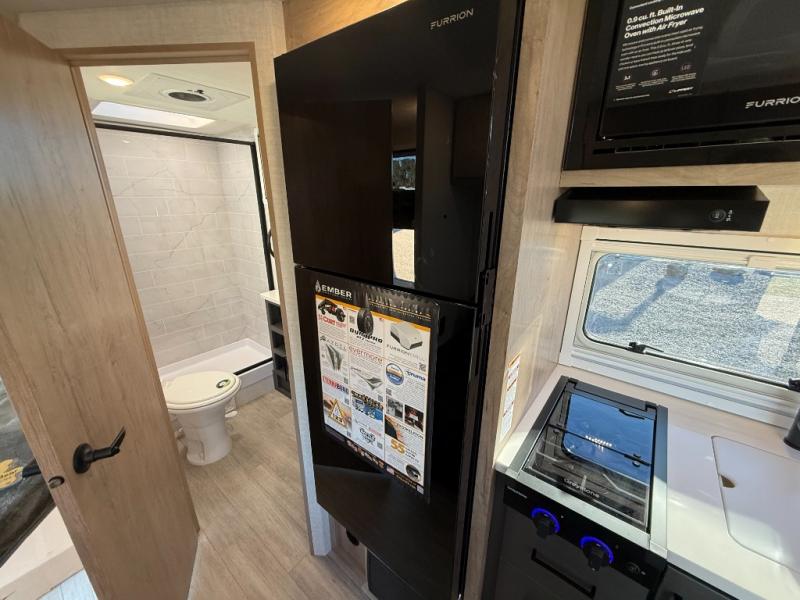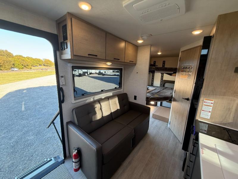 This unique travel trailer offers versatile living! Starting with the front Murphy bed that has a 60" x 80" queen bed to lay your head on at night and can convert into a sofa for seating during the day with a nightstand and a 12V HDTV/AV system to watch your favorite movies in bed. Create your best home cooked meals with the dual burner cooktop and 12V refrigerator then enjoy them at the jackknife sofa with a removable table. There is a second removable table that can be used by the Murphy bed/sofa. The repositionable Embertack E-track bunk/storage system has a 74" x 46" cargo space for your items and a storage locker door to access them from the exterior. You can enjoy twin bunks or convert them to double-size bunks to sleep two to four. The exterior also features a kayak/bike storage door, front pass-through storage area, and a 2" accessory receiver!