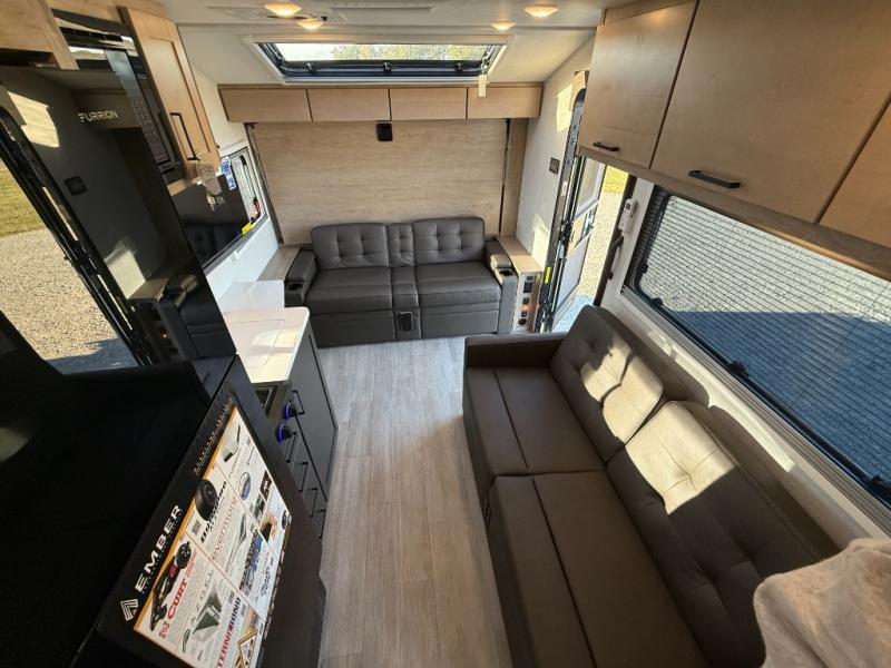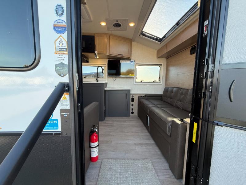 Each one of these Ember RV Overland Series travel trailers and toy hauler were built to meet the needs of today's most discerning RVers with layouts to fit couples and families! The CURT independent suspension comes with heavy-duty coil springs with dual shock absorbers on each wheel, and the 5-sided aluminum frame construction is sure to hold up through whatever adventure you throw its way. Laminated Azdel Onboard composite walls and rooftop prevent rotting or molding of the unit. Their chic interior design comes with structural composite flooring that is durable and easy to clean, dual pane caravan windows with integrated thermal shades/screens for added privacy, and an EmberLink smart RV control system to use at the touch of a finger. The Off-Grid Solar package lets you go further into the woods and the Safety First package helps you arrive safely to each destination.
