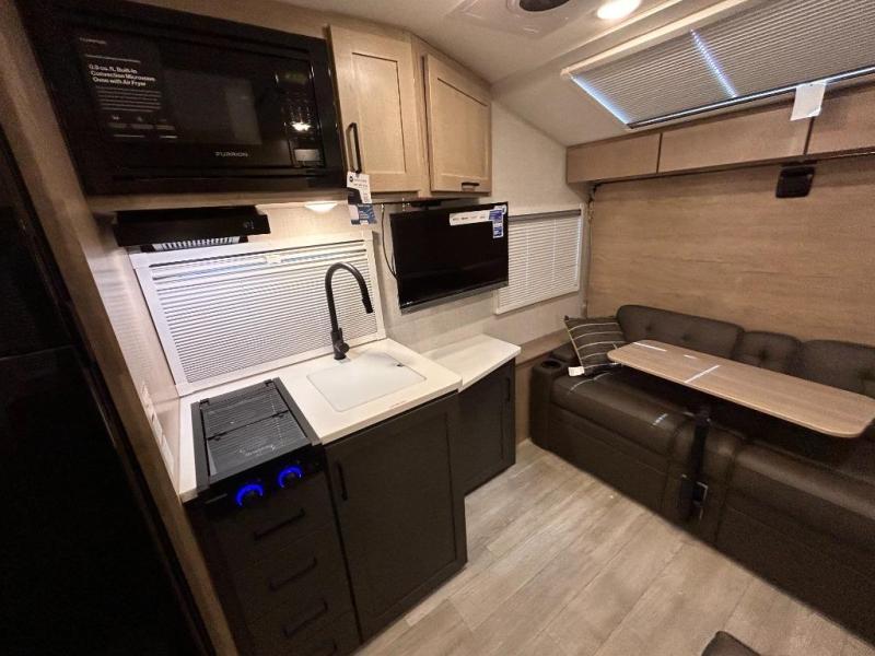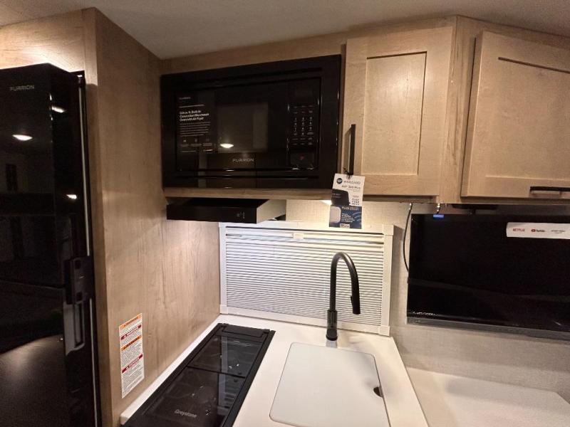 - Luxury Package (Mandatory): Solid Surface Countertops with Stainless Steel Sinks (Kitchen and Bath). Truma Combi Comfort Plus 20,400 BTU Water Heater/Furnace. Futrion Chill Cube -Whisper Quiet" Variable Speed Compressor 18,000 STU Ai, Conditioner with Remote Control, "Stargazer" Dual Pane Acrylic Skylight wilh lnlegrated sc,een and Shade. 60" x 80" Residenlial-Sized Queen Bed (NIA 240TKRI, EmberLink"' Smart RV Control System. Air Fryer Convection Mie