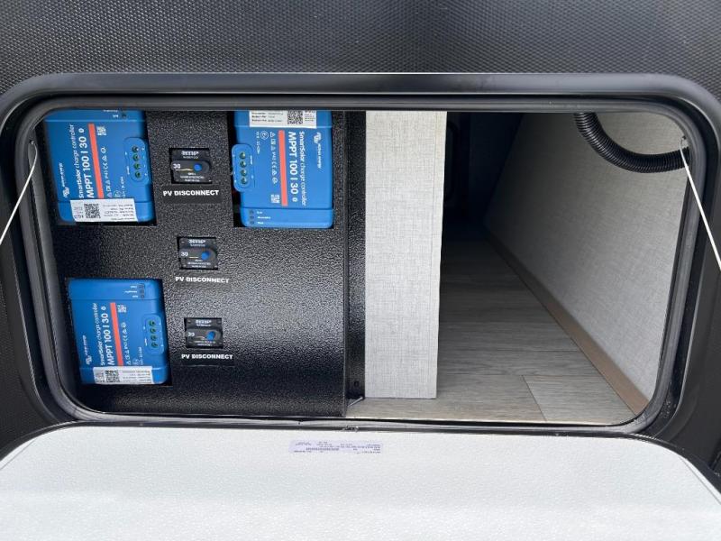 - ¥•• Solu: fac:bqe jMpdf!Ol'.)'I: 1200W Rooftop Solar (Six 200W Panels). 3000W Vlctron® Inverter with Cerbo Communication Center. 270Ah Deep Cycle 12V Battle Born® Gamechanger liFeP04 Sanery, Three Victron® 81ue1ooth® MPPT Controllers, REDARC® DC to DC Trailer Battery Charger. PV and Cold Weather Disconnects, Side and Rooftop Solar Ports