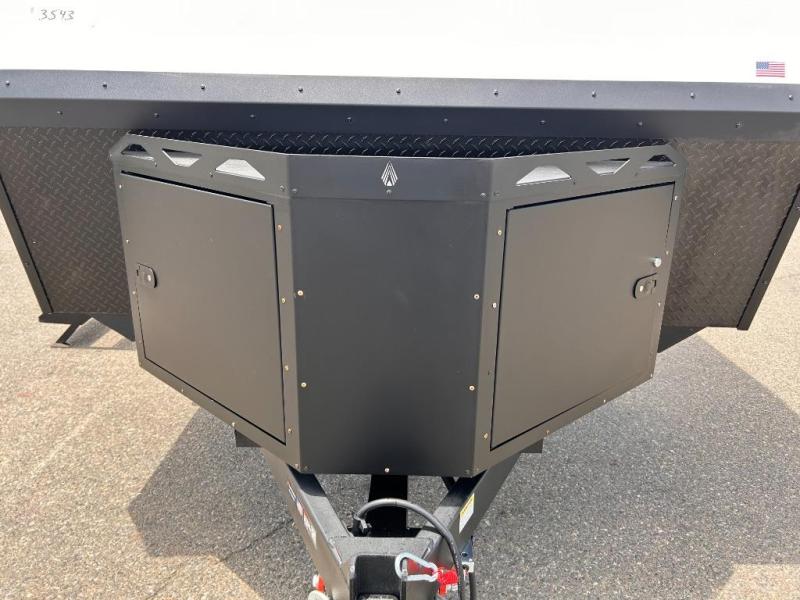 - Overland Package (Manda1Jm1: CURT Independent Suspension with Heavy-Duty Coil Spring and Oual Shock Absorbers (each wheel). Laminated Azdel® Composite Walls and Rooftop. Evermore"' Composite Flooring. 6-Sided Aluminum Frame Construction with Powder-coated Exoskeleton, Nitro-Filled 16" Hankook® Oynapro® AT2 Xlreme Off-Road Tires (including spare, MAOE IN USA!), Custom Slacked-out Aluminum Rims (including spare), lockable Tread Lock "' Wheel Brake. Trailblazer'" Heavy-Duty Offroad Tube Steel Chassis, Frame-integrated 300# Accessory Receiver (NIA 240TKR), VersaCoupler® Height-Adjustable Boll-On Hitching System, Tongue-Mounted Aluminum Gear Box, Steel Fenders/Wheel Wells. Fully Adjustable Entrance Slaps with Safe-T Rail Folding Handrail, Low-profile 12V Rooftop Fans. XL Fresh Water Tank. Thermostalically-controlled 12V Tank Healers, Starlink Cable Prep