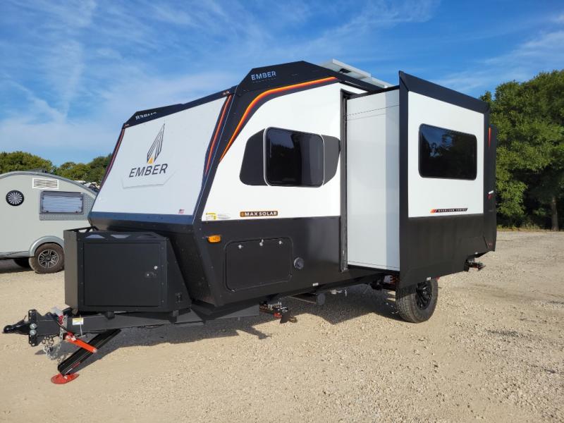 Each one of these Ember RV Overland Series travel trailers and toy hauler were built to meet the needs of today's most discerning RVers with layouts to fit couples and families! The CURT independent suspension comes with heavy-duty coil springs with dual shock absorbers on each wheel, and the 5-sided aluminum frame construction is sure to hold up through whatever adventure you throw its way. Laminated Azdel Onboard composite walls and rooftop prevent rotting or molding of the unit. Their chic interior design comes with structural composite flooring that is durable and easy to clean, dual pane caravan windows with integrated thermal shades/screens for added privacy, and an EmberLink smart RV control system to use at the touch of a finger. The Off-Grid Solar package lets you go further into the woods and the Safety First package helps you arrive safely to each destination. You will also appreciate the Luxury Package with an air fryer convection microwave, the Overland Package with an XL fresh water tank, and the optional Max Solar Package for maximum off-grid capabilities!