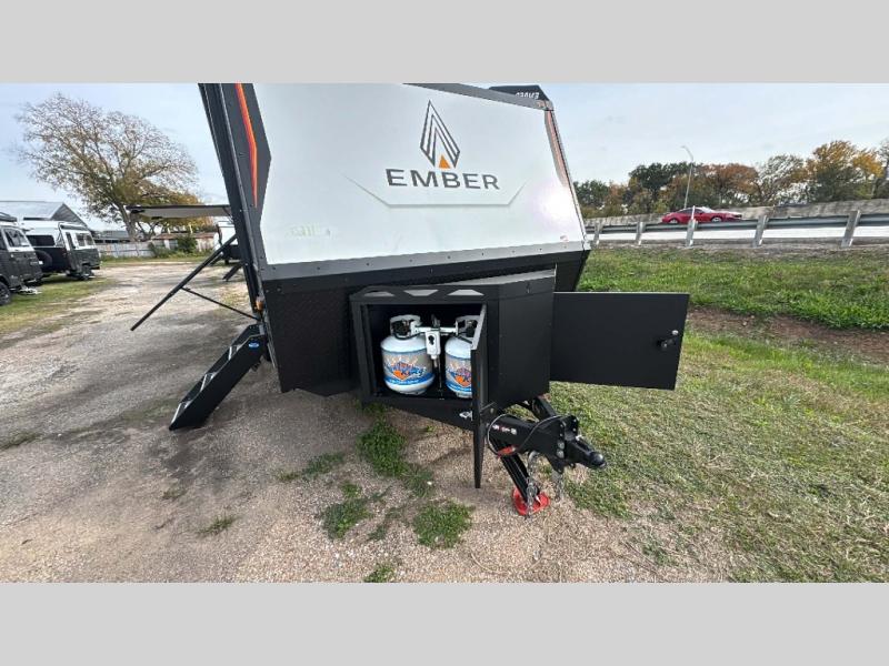 Each one of these Ember RV Overland Series travel trailers and toy hauler were built to meet the needs of today's most discerning RVers with layouts to fit couples and families! The CURT independent suspension comes with heavy-duty coil springs with dual shock absorbers on each wheel, and the 5-sided aluminum frame construction is sure to hold up through whatever adventure you throw its way. Laminated Azdel Onboard composite walls and rooftop prevent rotting or molding of the unit. Their chic interior design comes with structural composite flooring that is durable and easy to clean, dual pane caravan windows with integrated thermal shades/screens for added privacy, and an EmberLink smart RV control system to use at the touch of a finger. The Off-Grid Solar package lets you go further into the woods and the Safety First package helps you arrive safely to each destination. You will also appreciate the Luxury Package with an air fryer convection microwave, the Overland Package with an XL fresh water tank, and the optional Max Solar Package for maximum off-grid capabilities!