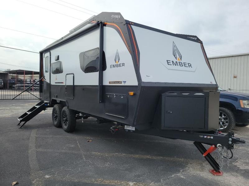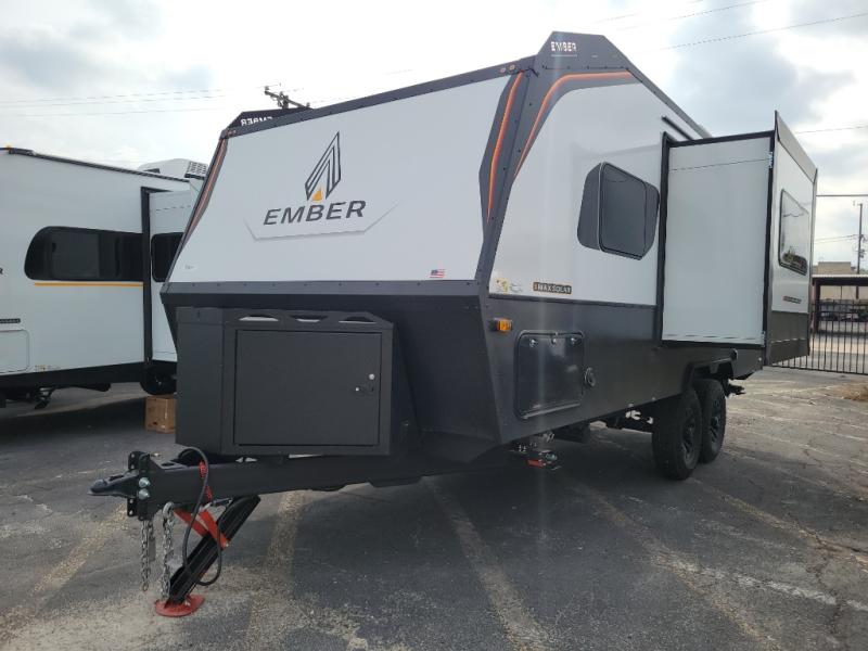 Each one of these Ember RV Overland Series travel trailers and toy hauler were built to meet the needs of today's most discerning RVers with layouts to fit couples and families! The CURT independent suspension comes with heavy-duty coil springs with dual shock absorbers on each wheel, and the 5-sided aluminum frame construction is sure to hold up through whatever adventure you throw its way. Laminated Azdel Onboard composite walls and rooftop prevent rotting or molding of the unit. Their chic interior design comes with structural composite flooring that is durable and easy to clean, dual pane caravan windows with integrated thermal shades/screens for added privacy, and an EmberLink smart RV control system to use at the touch of a finger. The Off-Grid Solar package lets you go further into the woods and the Safety First package helps you arrive safely to each destination.