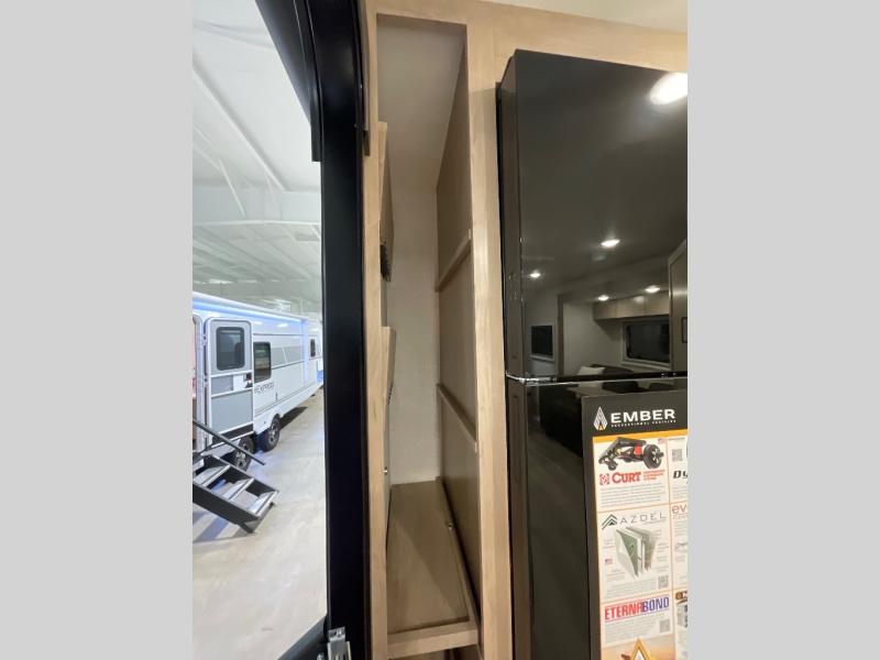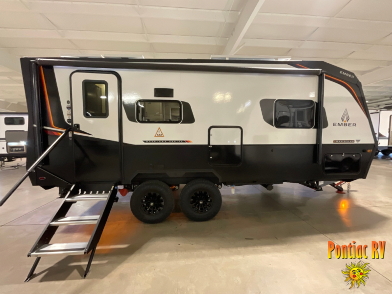 Each one of these Ember RV Overland Series travel trailers and toy hauler were built to meet the needs of today's most discerning RVers with layouts to fit couples and families! The CURT independent suspension comes with heavy-duty coil springs with dual shock absorbers on each wheel, and the 5-sided aluminum frame construction is sure to hold up through whatever adventure you throw its way. Laminated Azdel Onboard composite walls and rooftop prevent rotting or molding of the unit. Their chic interior design comes with structural composite flooring that is durable and easy to clean, dual pane caravan windows with integrated thermal shades/screens for added privacy, and an EmberLink smart RV control system to use at the touch of a finger. The Off-Grid Solar package lets you go further into the woods and the Safety First package helps you arrive safely to each destination.