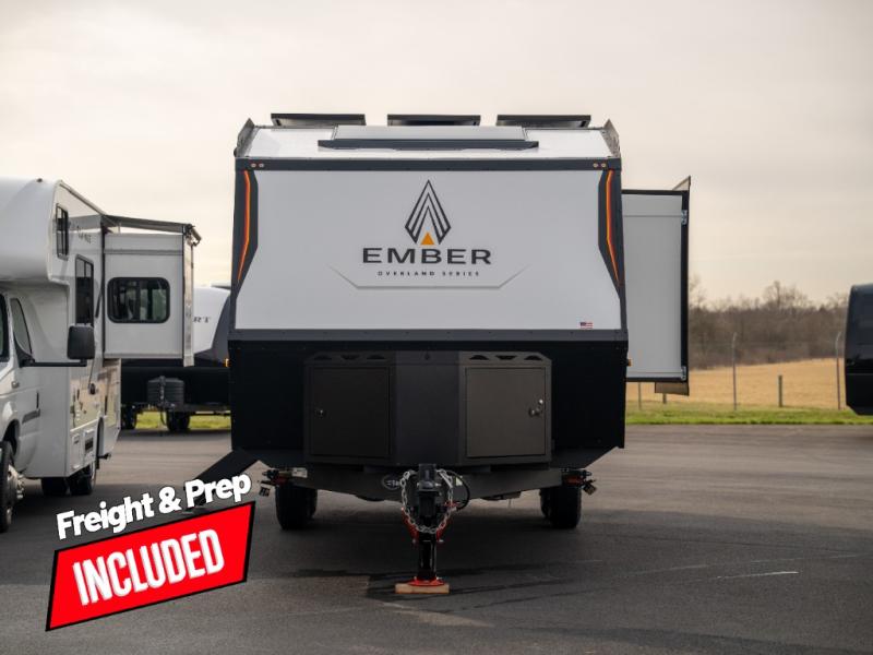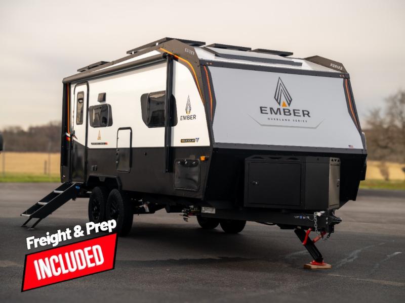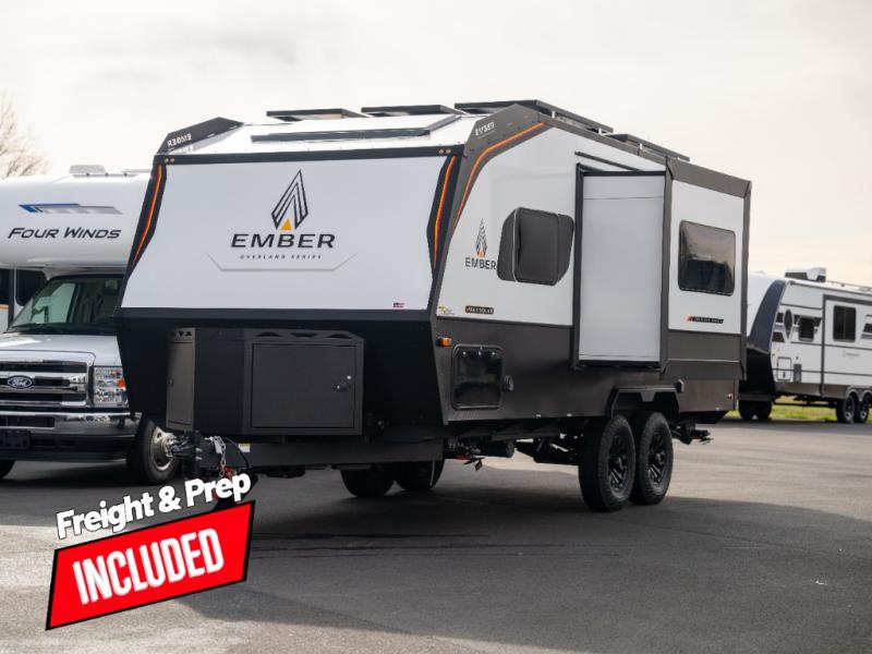 Each one of these Ember RV Overland Series travel trailers and toy hauler were built to meet the needs of today's most discerning RVers with layouts to fit couples and families! The CURT independent suspension comes with heavy-duty coil springs with dual shock absorbers on each wheel, and the 6-sided aluminum frame construction is sure to hold up through whatever adventure you throw its way. Laminated Azdel Onboard composite walls and rooftop prevent rotting or molding of the unit. Their chic interior design comes with structural composite flooring that is durable and easy to clean, dual pane caravan windows with integrated thermal shades/screens for added privacy, and an EmberLink smart RV control system to use at the touch of a finger. Also, the Max Solar package lets you go further into the woods!