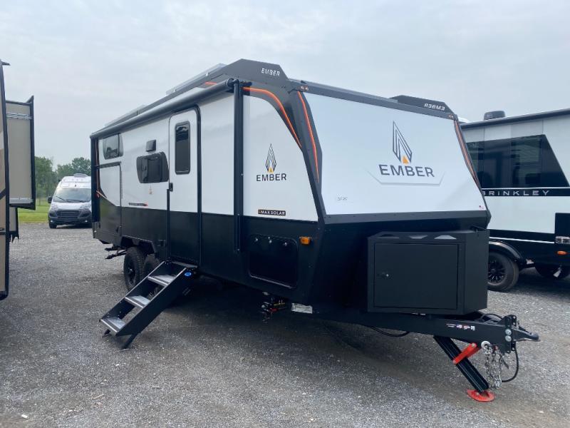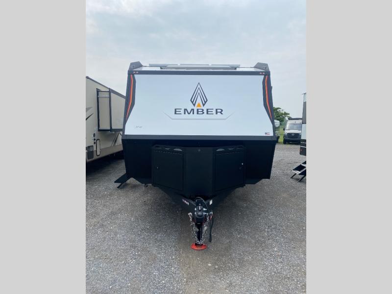 Each one of these Ember RV Overland Series travel trailers and toy hauler were built to meet the needs of today's most discerning RVers with layouts to fit couples and families! The CURT independent suspension comes with heavy-duty coil springs with dual shock absorbers on each wheel, and the 5-sided aluminum frame construction is sure to hold up through whatever adventure you throw its way. Laminated Azdel Onboard composite walls and rooftop prevent rotting or molding of the unit. Their chic interior design comes with structural composite flooring that is durable and easy to clean, dual pane caravan windows with integrated thermal shades/screens for added privacy, and an EmberLink smart RV control system to use at the touch of a finger. The Off-Grid Solar package lets you go further into the woods and the Safety First package helps you arrive safely to each destination. You will also appreciate the Luxury Package with an air fryer convection microwave, the Overland Package with an XL fresh water tank, and the optional Max Solar Package for maximum off-grid capabilities!