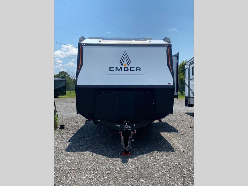Each one of these Ember RV Overland Series travel trailers and toy hauler were built to meet the needs of today's most discerning RVers with layouts to fit couples and families! The CURT independent suspension comes with heavy-duty coil springs with dual shock absorbers on each wheel, and the 5-sided aluminum frame construction is sure to hold up through whatever adventure you throw its way. Laminated Azdel Onboard composite walls and rooftop prevent rotting or molding of the unit. Their chic interior design comes with structural composite flooring that is durable and easy to clean, dual pane caravan windows with integrated thermal shades/screens for added privacy, and an EmberLink smart RV control system to use at the touch of a finger. The Off-Grid Solar package lets you go further into the woods and the Safety First package helps you arrive safely to each destination. You will also appreciate the Luxury Package with an air fryer convection microwave, the Overland Package with an XL fresh water tank, and the optional Max Solar Package for maximum off-grid capabilities!