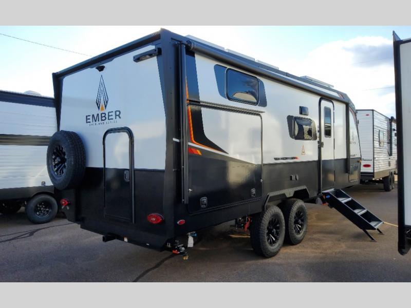 Each one of these Ember RV Overland Series travel trailers and toy hauler were built to meet the needs of today's most discerning RVers with layouts to fit couples and families! The CURT independent suspension comes with heavy-duty coil springs with dual shock absorbers on each wheel, and the 5-sided aluminum frame construction is sure to hold up through whatever adventure you throw its way. Laminated Azdel Onboard composite walls and rooftop prevent rotting or molding of the unit. Their chic interior design comes with structural composite flooring that is durable and easy to clean, dual pane caravan windows with integrated thermal shades/screens for added privacy, and an EmberLink smart RV control system to use at the touch of a finger. The Off-Grid Solar package lets you go further into the woods and the Safety First package helps you arrive safely to each destination.