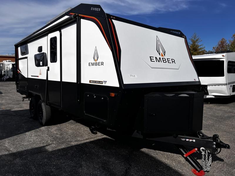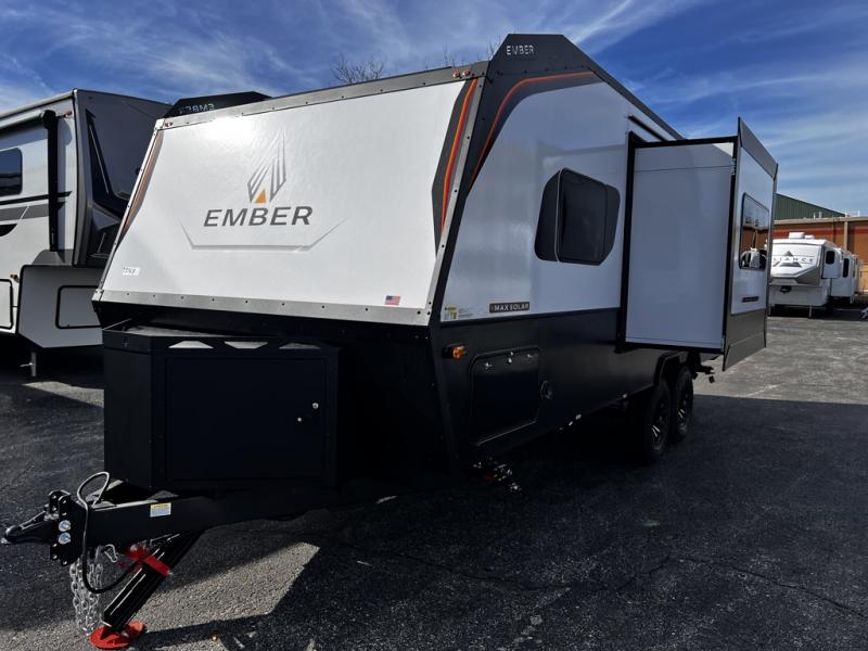 Each one of these Ember RV Overland Series travel trailers and toy hauler were built to meet the needs of today's most discerning RVers with layouts to fit couples and families! The CURT independent suspension comes with heavy-duty coil springs with dual shock absorbers on each wheel, and the 5-sided aluminum frame construction is sure to hold up through whatever adventure you throw its way. Laminated Azdel Onboard composite walls and rooftop prevent rotting or molding of the unit. Their chic interior design comes with structural composite flooring that is durable and easy to clean, dual pane caravan windows with integrated thermal shades/screens for added privacy, and an EmberLink smart RV control system to use at the touch of a finger. The Off-Grid Solar package lets you go further into the woods and the Safety First package helps you arrive safely to each destination.
