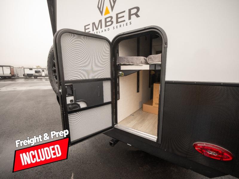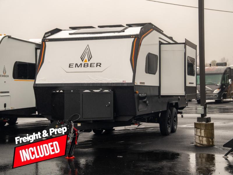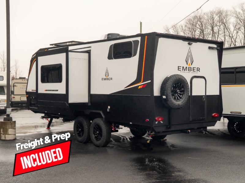 Each one of these Ember RV Overland Series travel trailers and toy hauler were built to meet the needs of today's most discerning RVers with layouts to fit couples and families! The CURT independent suspension comes with heavy-duty coil springs with dual shock absorbers on each wheel, and the 6-sided aluminum frame construction is sure to hold up through whatever adventure you throw its way. Laminated Azdel Onboard composite walls and rooftop prevent rotting or molding of the unit. Their chic interior design comes with structural composite flooring that is durable and easy to clean, dual pane caravan windows with integrated thermal shades/screens for added privacy, and an EmberLink smart RV control system to use at the touch of a finger. Also, the Max Solar package lets you go further into the woods!