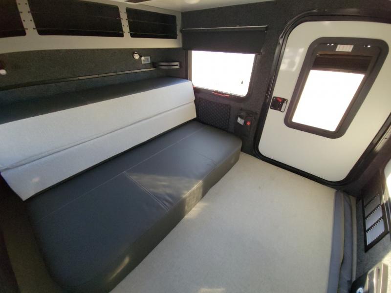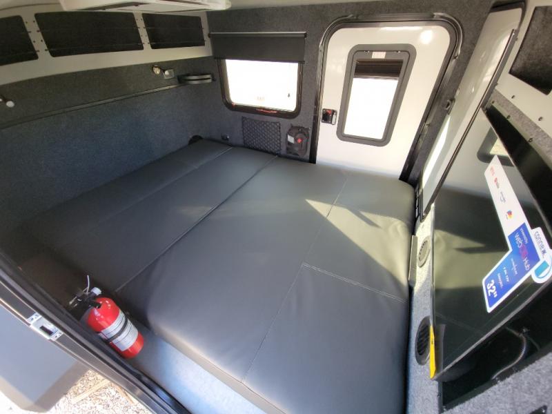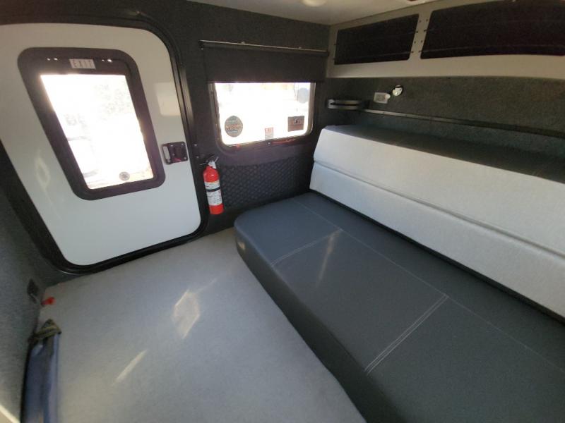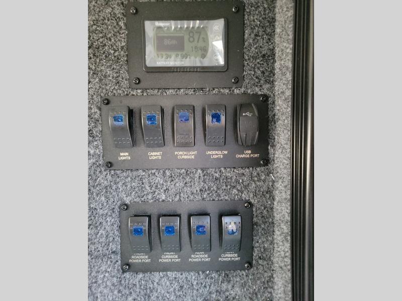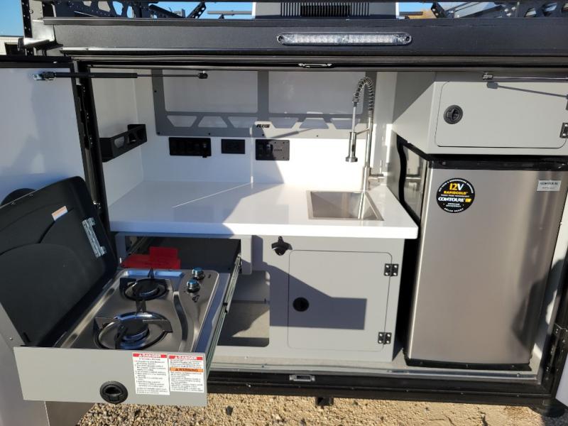 You will be so excited to test out this ROG travel trailer for yourself! The interior has great storage solutions to keep your camp gear secure. The rear outdoor kitchen has convenient amenities to help you eat well while you're away. You'll find a two-burner stove with cast-iron grates and a 3.3 cu. ft. 12V refrigerator to cook and store food. And the queen/futon mattress is sure to bring a great night's rest!