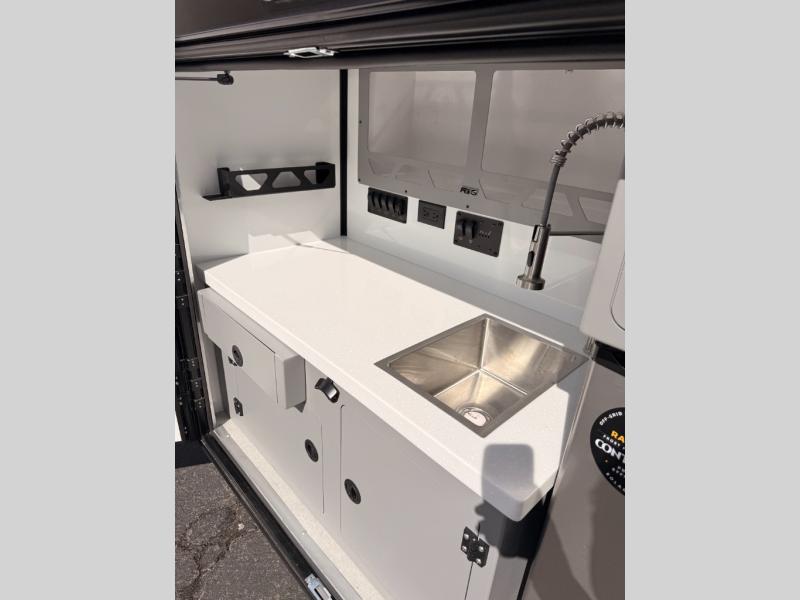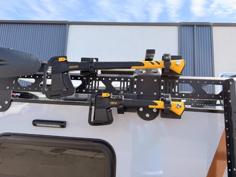 The Encore RV ROG travel trailer and toy hauler expandable has a smaller size and a rugged design so that you can tow with ease and visit remote spots that other campers can't. While you go off-grid, you'll stay comfortable with the amenities provided by the ROG. These lightweight models are 100% wood free for added durability, along with an all-aluminum frame, a one-piece fiberglass roof, and tri-bond construction. You will love the premium components throughout, such a JBL, Azdel, and Dexter brands, and each model also includes solid surface countertops with no wood substrate.