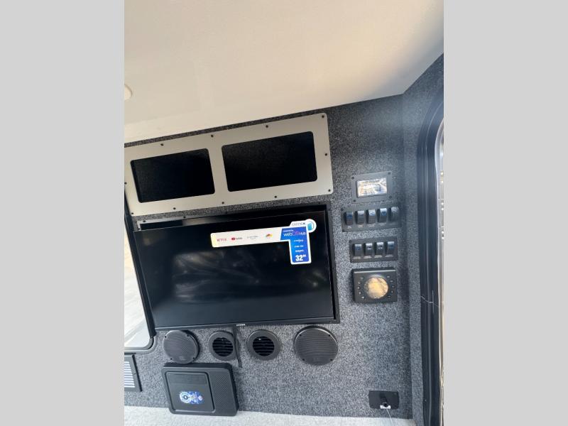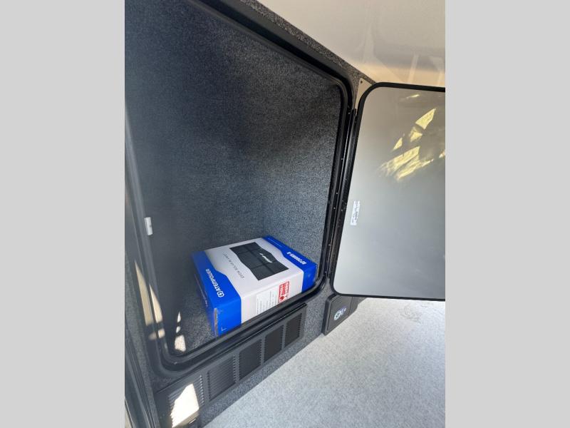 The Encore RV ROG Survival Series travel trailers offers tons of extra features for those who want to take on tougher terrain. The exterior is equipped with useful tools like an off-grid ladder, a splitting axe and a chopping axe, and an overland shovel. The optional roof rack has four 74" crossbars, and a pair of flood lights are mounted there as well. Custom Survival Series graphics also set this one apart, and the standard flag bracket with mount and pole can be equipped with an American or Canadian flag. And for some extra bonus items, you will love the personal water filtration system, first aid kit, and the Survival Hacks book, which will surely come in handy!