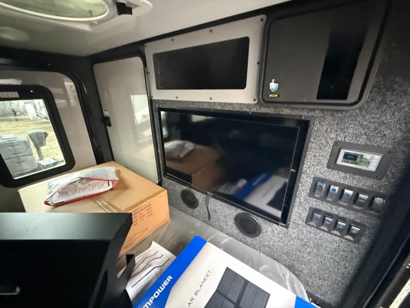 The Encore RV ROG Survival Series travel trailers offers tons of extra features for those who want to take on tougher terrain. The exterior is equipped with useful tools like an off-grid ladder, a splitting axe and a chopping axe, and an overland shovel. The optional roof rack has four 74" crossbars, and a pair of flood lights are mounted there as well. Custom Survival Series graphics also set this one apart, and the standard flag bracket with mount and pole can be equipped with an American or Canadian flag. And for some extra bonus items, you will love the personal water filtration system, first aid kit, and the Survival Hacks book, which will surely come in handy!
