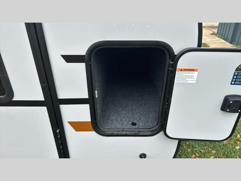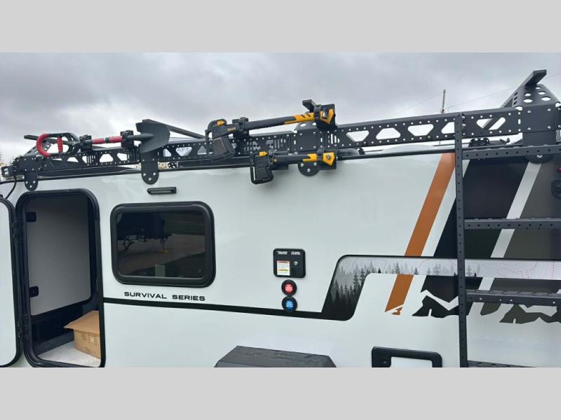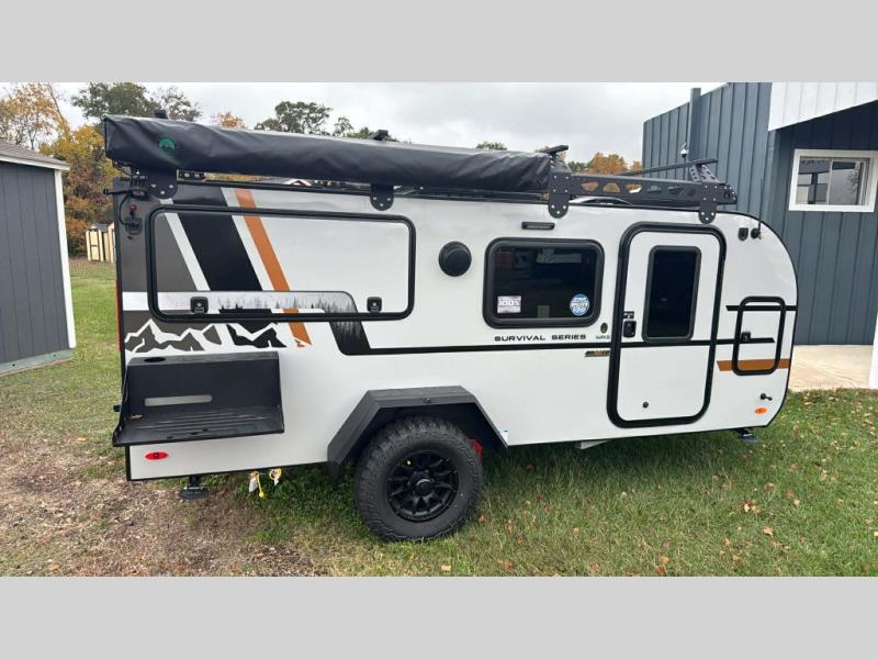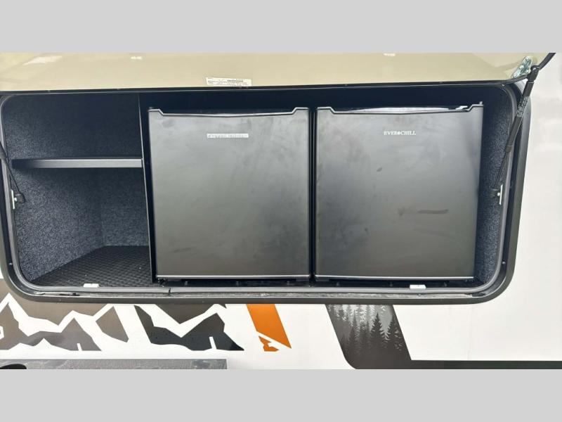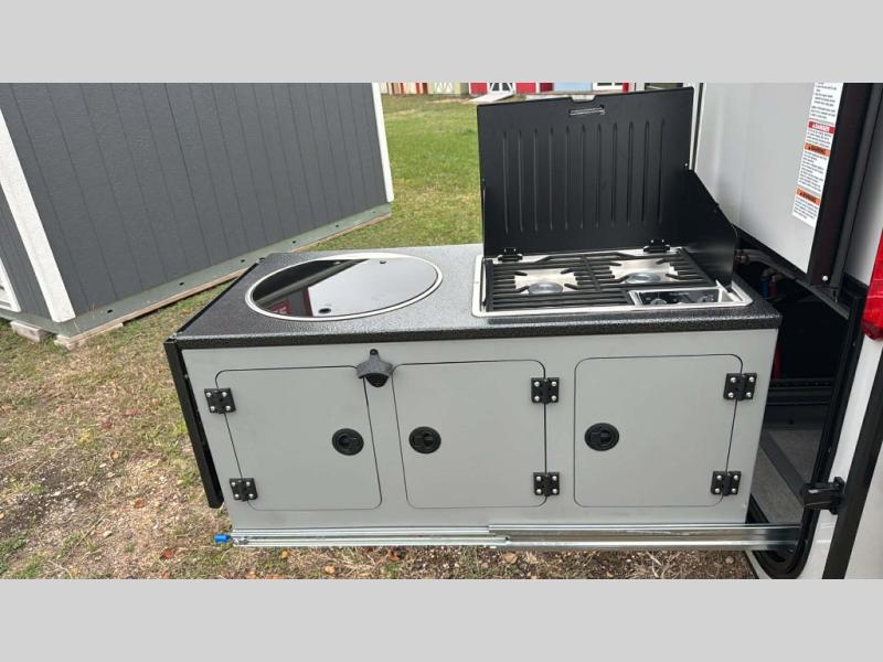This compact travel trailer is ready to go when you are! The interior has great storage solutions with aluminum cabinetry and a closet/storage for more gear. There is 12V LED lighting/accent lighting to keep the interior bright, and you will appreciate the USB charge port to keep your electronics at 100%. The slide out rear kitchen has convenient amenities to help you eat well while you're away. You'll find a two-burner stove, a sink, and flip-up countertop, plus two 1.7 cu. ft. refrigerators to keep your perishables nice and cold. The cassette toilet and shower has an aluminum shower pan and SeaDek mat. And you can choose the optional Survival Series Package for even more stand-out features!