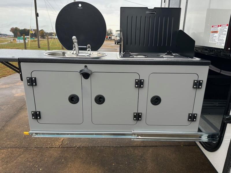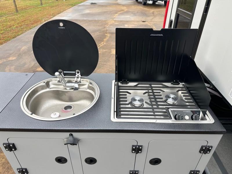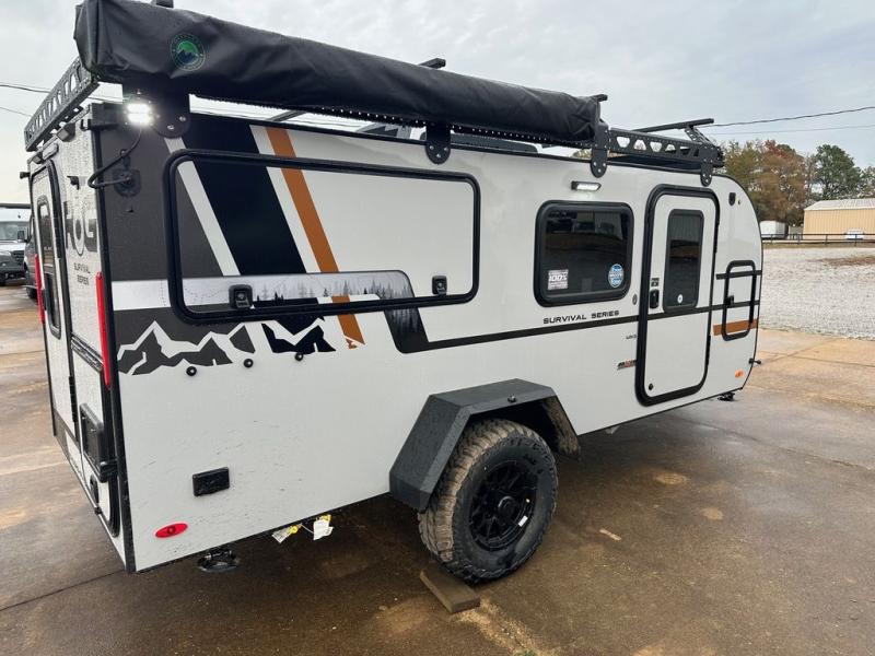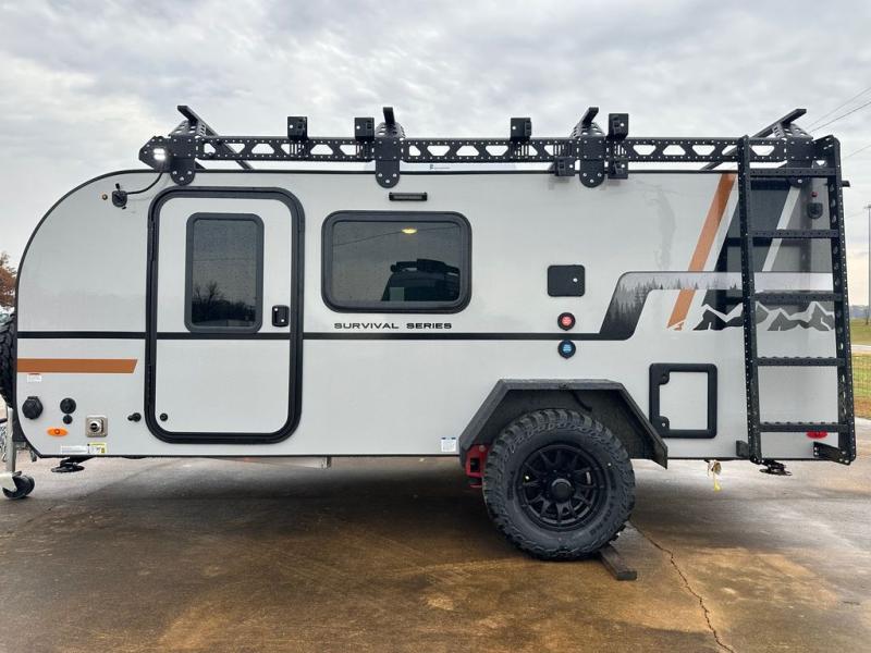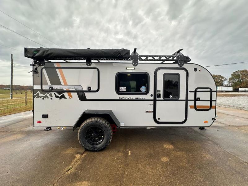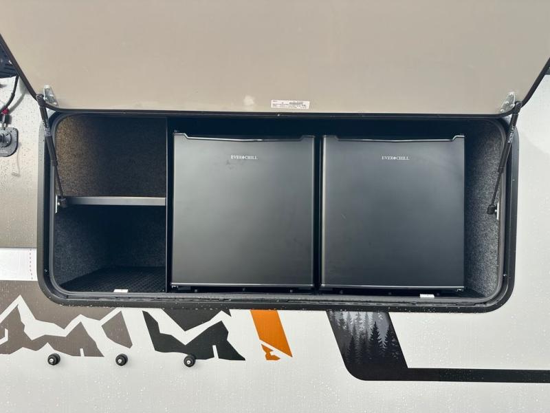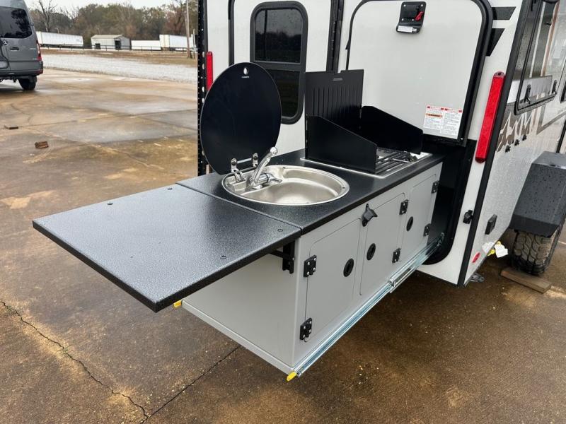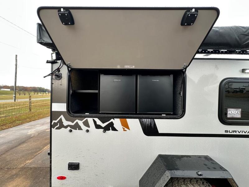 This compact travel trailer is ready to go when you are! The interior has great storage solutions with aluminum cabinetry and a closet/storage for more gear. There is 12V LED lighting/accent lighting to keep the interior bright, and you will appreciate the USB charge port to keep your electronics at 100%. The slide out rear kitchen has convenient amenities to help you eat well while you're away. You'll find a two-burner stove, a sink, and flip-up countertop, plus two 1.7 cu. ft. refrigerators to keep your perishables nice and cold. The cassette toilet and shower has an aluminum shower pan and SeaDek mat. And you can choose the optional Survival Series Package for even more stand-out features!