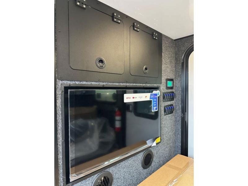 The Encore RV ROG travel trailer and toy hauler expandable has a smaller size and a rugged design so that you can tow with ease and visit remote spots that other campers can't. While you go off-grid, you'll stay comfortable with the amenities provided by the ROG. These lightweight models are 100% wood free for added durability, along with an all-aluminum frame, a one-piece fiberglass roof, and tri-bond construction. You will love the premium components throughout, such a JBL, Azdel, and Dexter brands, and each model also includes solid surface countertops with no wood substrate.