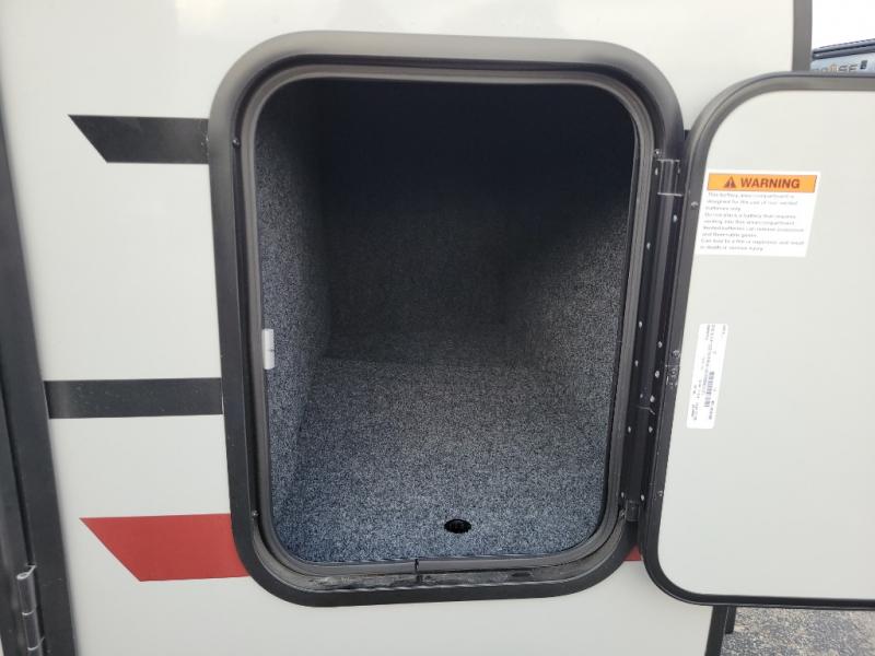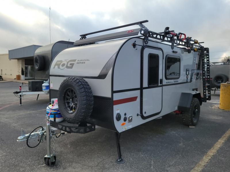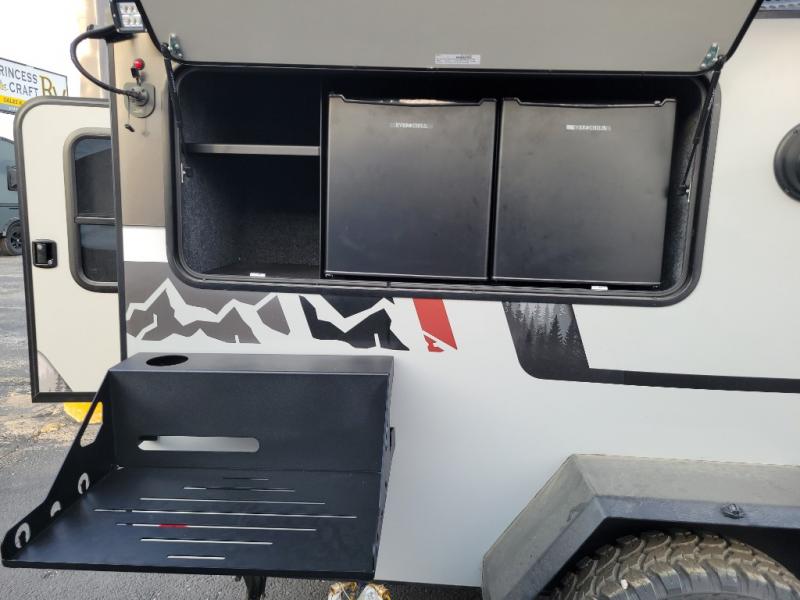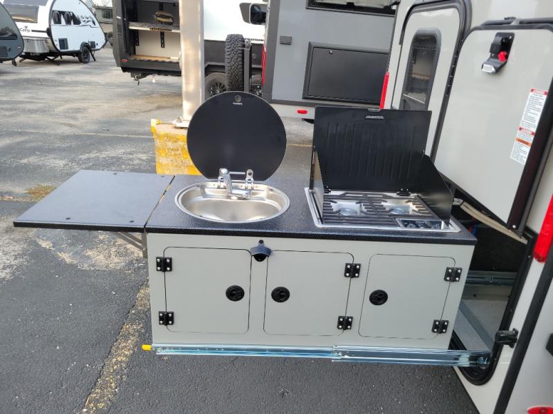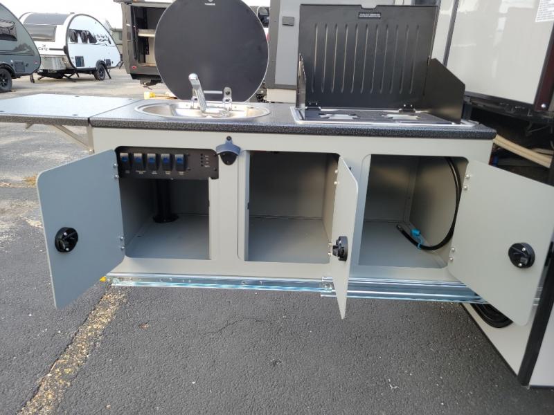 This compact travel trailer is ready to go when you are! The interior has great storage solutions with aluminum cabinetry and a closet/storage for more gear. There is 12V LED lighting/accent lighting to keep the interior bright, and you will appreciate the USB charge port to keep your electronics at 100%. The slide out rear kitchen has convenient amenities to help you eat well while you're away. You'll find a two-burner stove, a sink, and flip-up countertop, plus two 1.7 cu. ft. refrigerators to keep your perishables nice and cold. The cassette toilet and shower has an aluminum shower pan and SeaDek mat. And you can choose the optional Survival Series Package for even more stand-out features!
