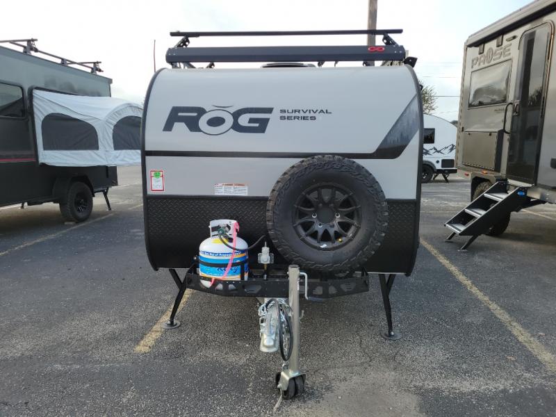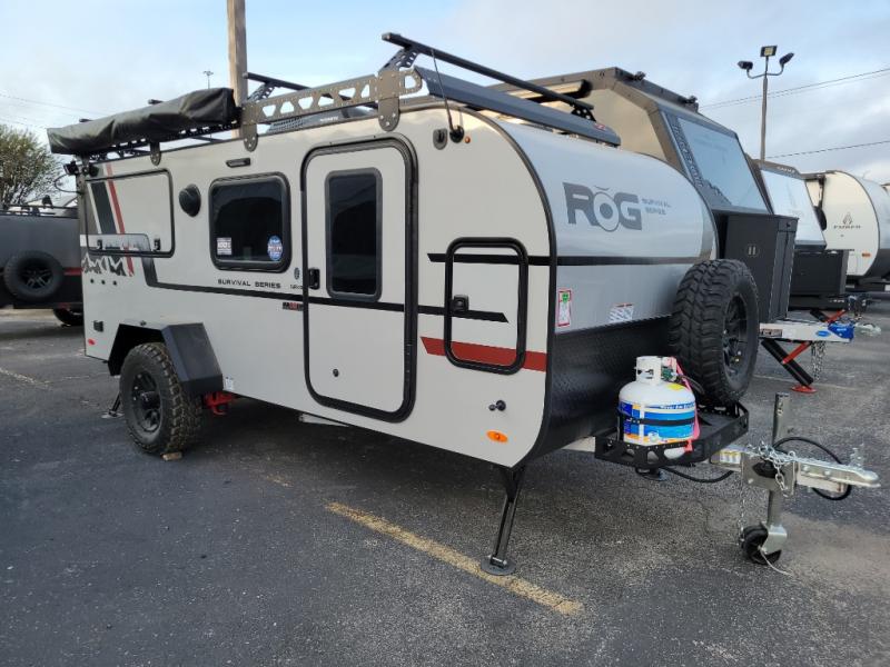 The Encore RV ROG travel trailer and toy hauler expandable has a smaller size and a rugged design so that you can tow with ease and visit remote spots that other campers can't. While you go off-grid, you'll stay comfortable with the amenities provided by the ROG. These lightweight models are 100% wood free for added durability, along with an all-aluminum frame, a one-piece fiberglass roof, and tri-bond construction. You will love the premium components throughout, such a JBL, Azdel, and Dexter brands, and each model also includes solid surface countertops with no wood substrate.
