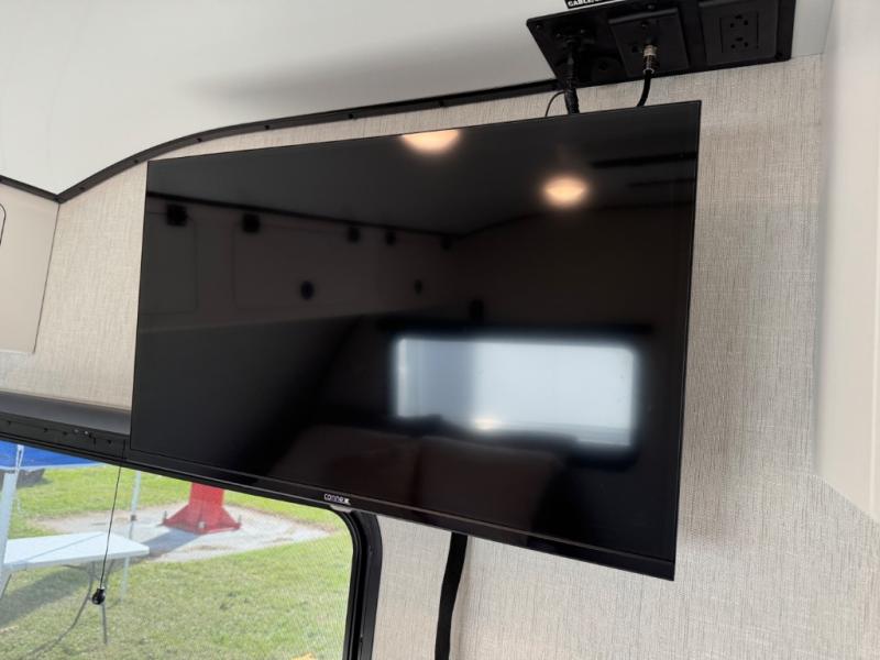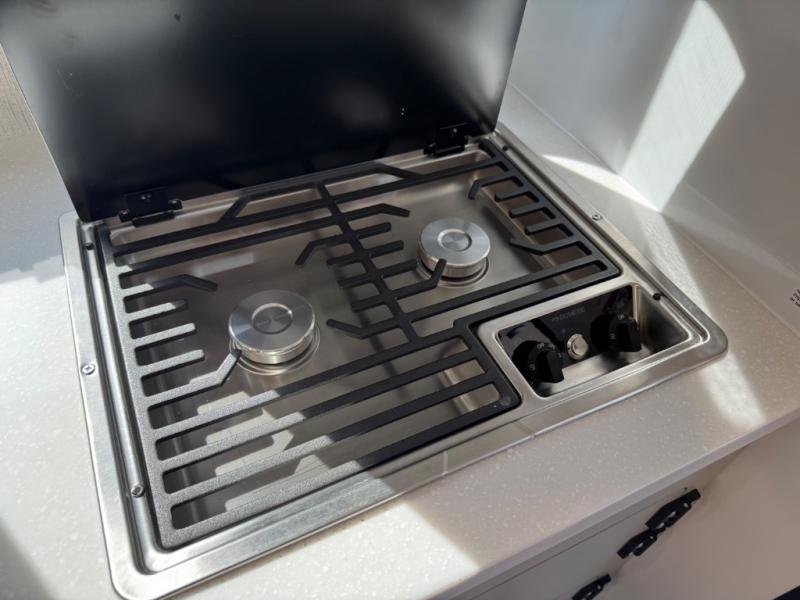 Expand your horizons with one of these Encore RV Venu travel trailers! They are 100% wood free with an all aluminum tube construction, aluminum wheels, and a hi-gloss fiberglass one-piece roof. The Tweed interior walls come with Azdel and the one-piece Luxe vinyl flooring is not only durable, but also easy to clean. The exterior scare lights help to deter unwanted visitors. A few more safety features include safety chains, electric brake axles, and a full-size spare tire and mount just in case. An electric tongue jack will make towing easier than ever, plus there is a large pass-thru storage with LED lights, four frameless windows, and a heavy-duty ladder so you can wash off the top of your unit after a weekend in the woods!