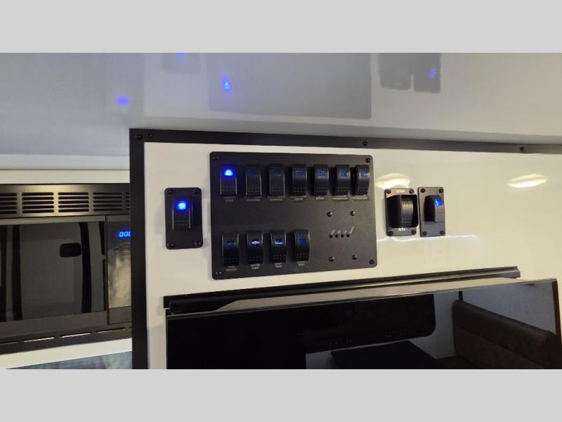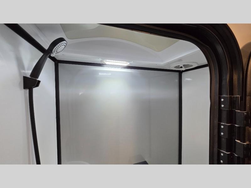 Expand your horizons with one of these Encore RV Venu travel trailers! They are 100% wood free with an all-aluminum tube construction, aluminum wheels, and a hi-gloss fiberglass one-piece roof. The Tweed interior walls come with Azdel and the one-piece Luxe vinyl flooring is not only durable, but also easy to clean. The exterior scare lights help to deter unwanted visitors. A few more safety features include safety chains, electric brake axles, and a full-size spare tire and mount just in case. An electric tongue jack will make towing easier than ever, plus there is a large pass-thru storage with LED lights, and four sleek frameless windows