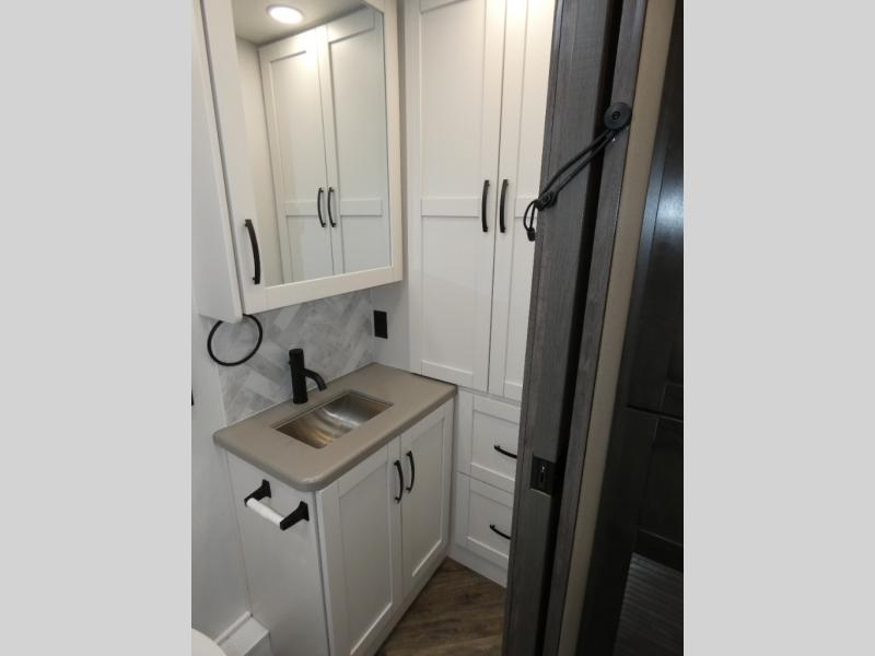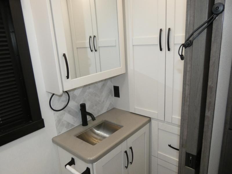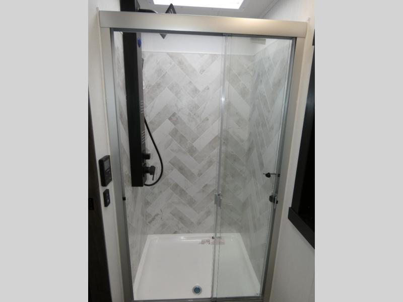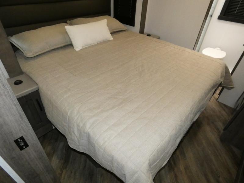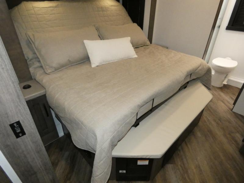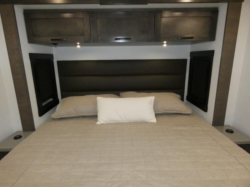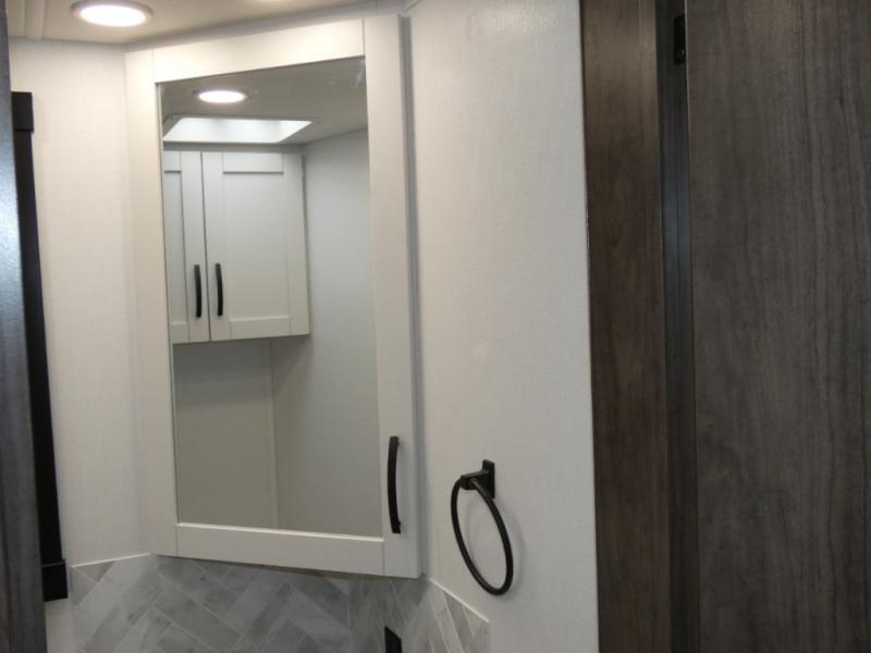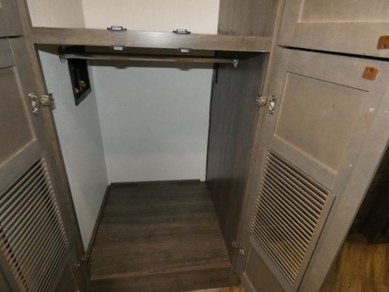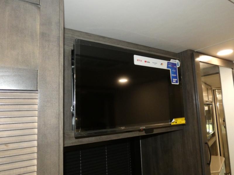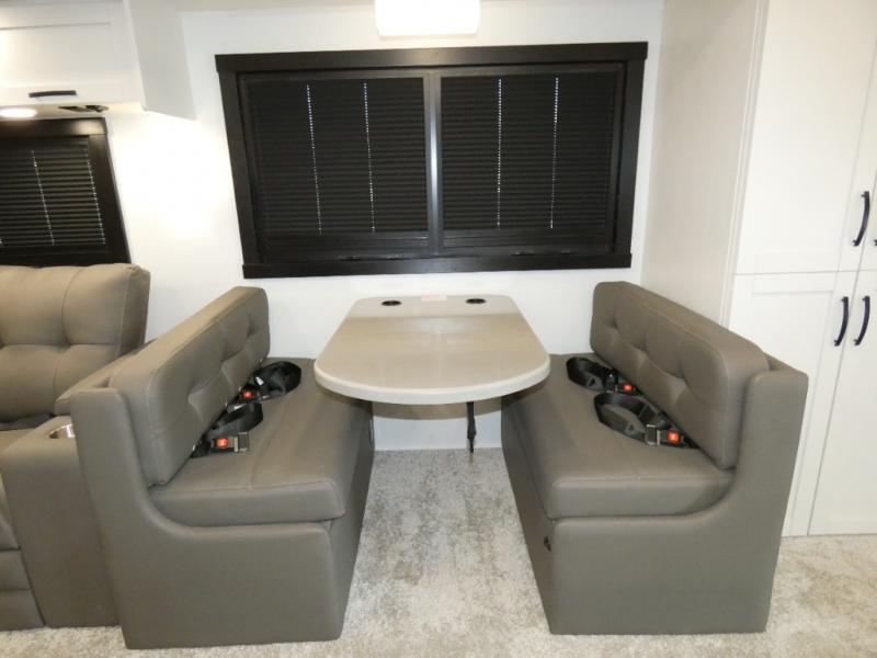 Get ready for fun adventures in this double slide out coach! Once you arrive at your destination, set up the 17' power awning with LED lights and watch the big game on the exterior LED Smart TV. You'll find plenty of seating spaces in the main living area on the 93" reclining sofa or at the booth dinette, plus there is a fireplace here and an LED HD Smart TV. The kitchen is any chef's dream with its residential refrigerator, two burner induction cooktop, and residential-size convection microwave. This model also includes a bath and a half that will come in handy when traveling with friends and family, and don't overlook the master bedroom with a power head lift king bed slide, large wardrobes, and an LED Smart TV!