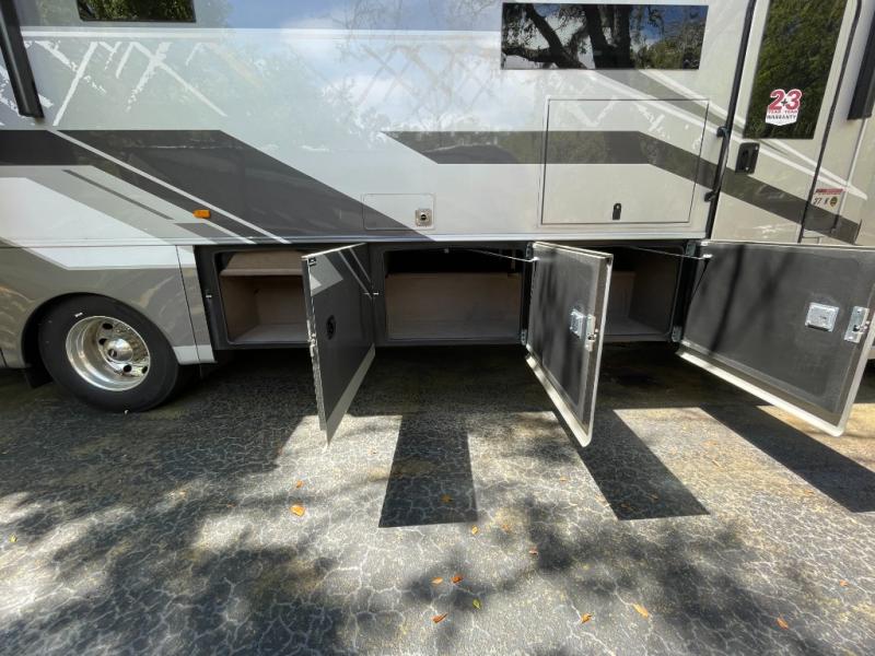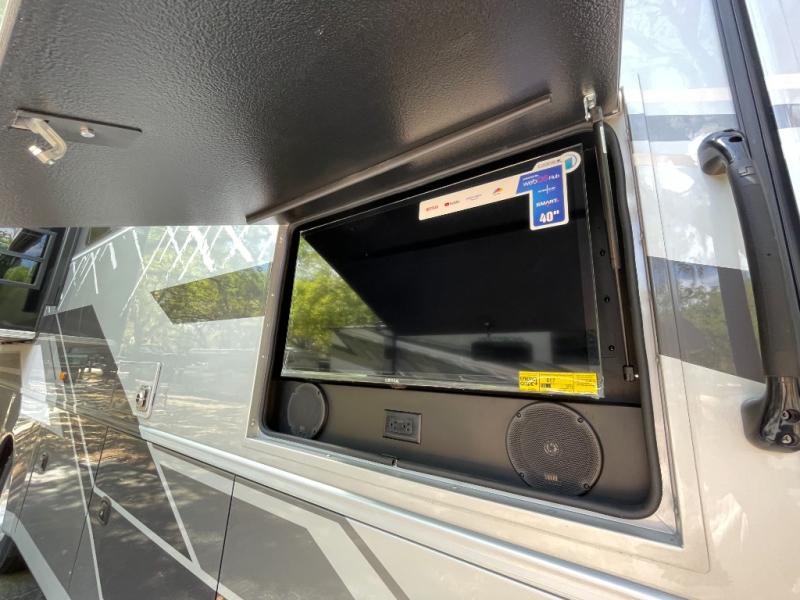 Get ready for fun adventures in this double slide out coach! Once you arrive at your destination, set up the 17' power awning with LED lights and watch the big game on the exterior LED Smart TV. You'll find plenty of seating spaces in the main living area on the 93" reclining sofa or at the booth dinette, plus there is a fireplace here and an LED HD Smart TV. The kitchen is any chef's dream with its residential refrigerator, two burner induction cooktop, and residential-size convection microwave. This model also includes a bath and a half that will come in handy when traveling with friends and family, and don't overlook the master bedroom with a power head lift king bed slide, large wardrobes, and an LED Smart TV!