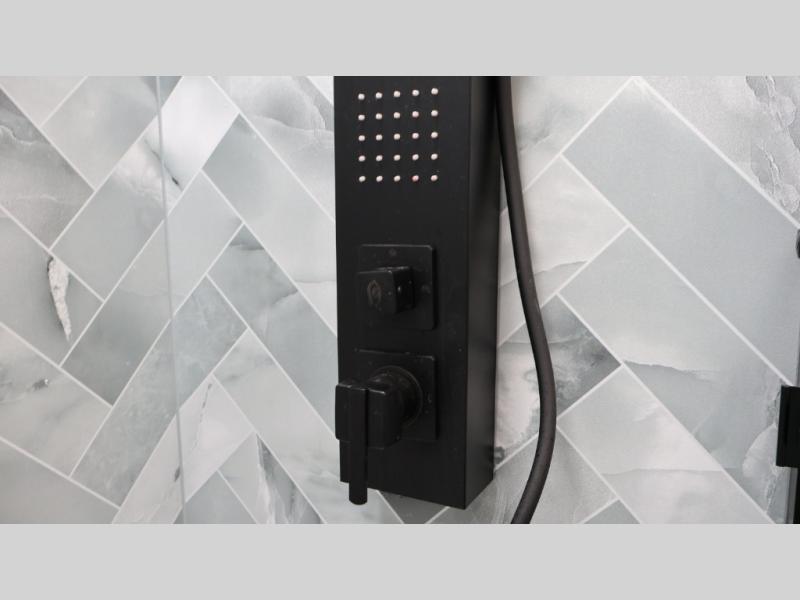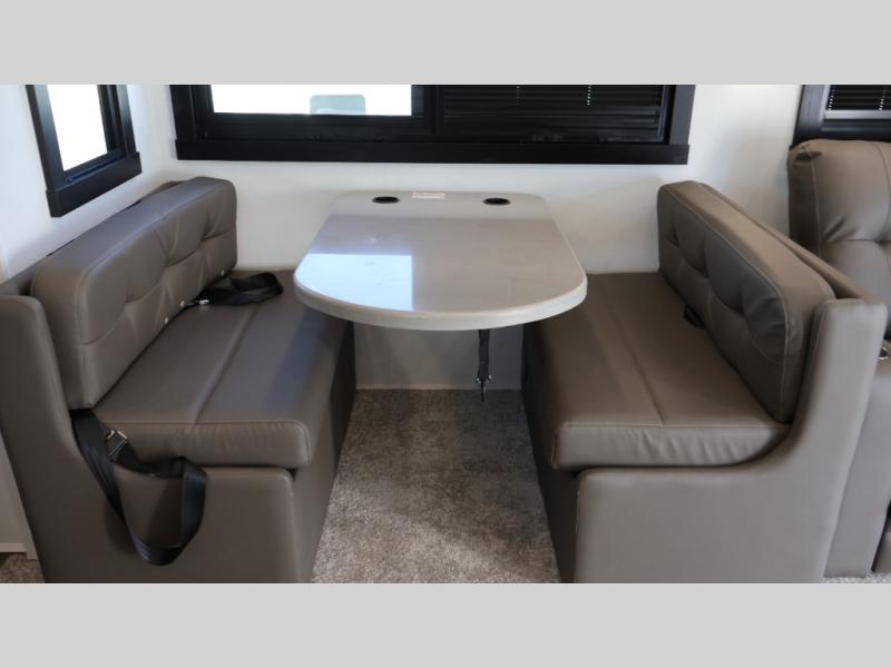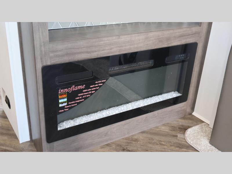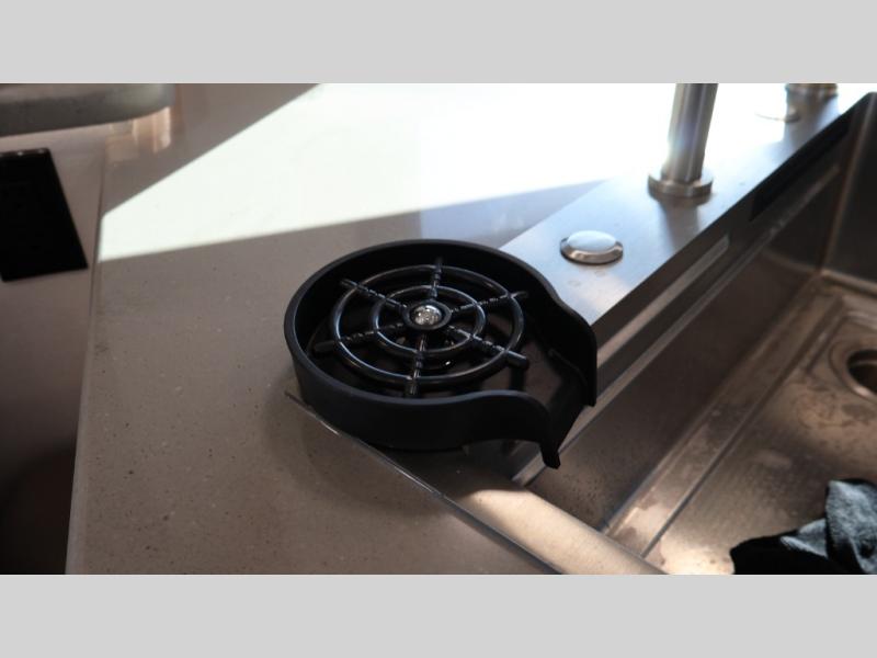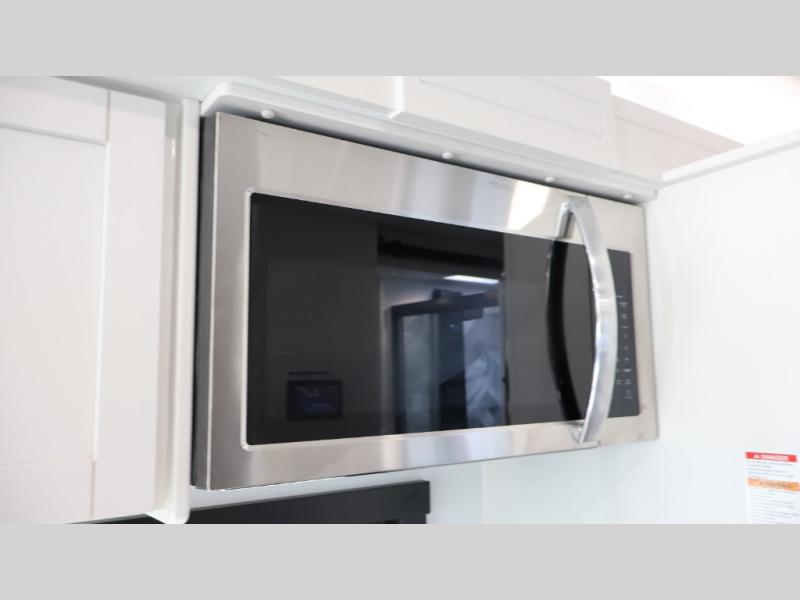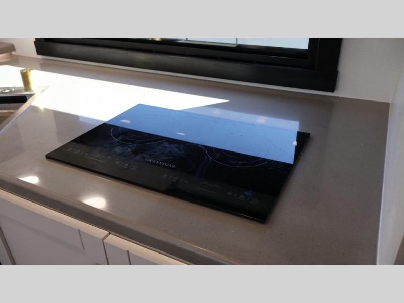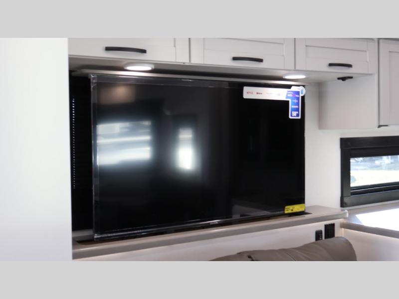 If you liked the Accolade model 37L, but don't need the extra sleeping space from the bunks, this 37M Accolade coach is perfect for you! You'll still have the cab-over bunk, the full-wall slide, and the rear private bedroom. The power head lift king bed will allow you to sit up and read at night, or you may just want to watch a movie on the bedroom LED TV. The chef of your group can prepare meals on the two burner induction cooktop, or use the residential-size convection microwave, and there is a residential refrigerator just like at home. Relaxing each day will be a breeze with the power theater seating across from the 50" TV lift and second sofa, and you can dine at the booth dinette. There is also a hutch for added storage space, and an impressive 23' power awning with LED lights!