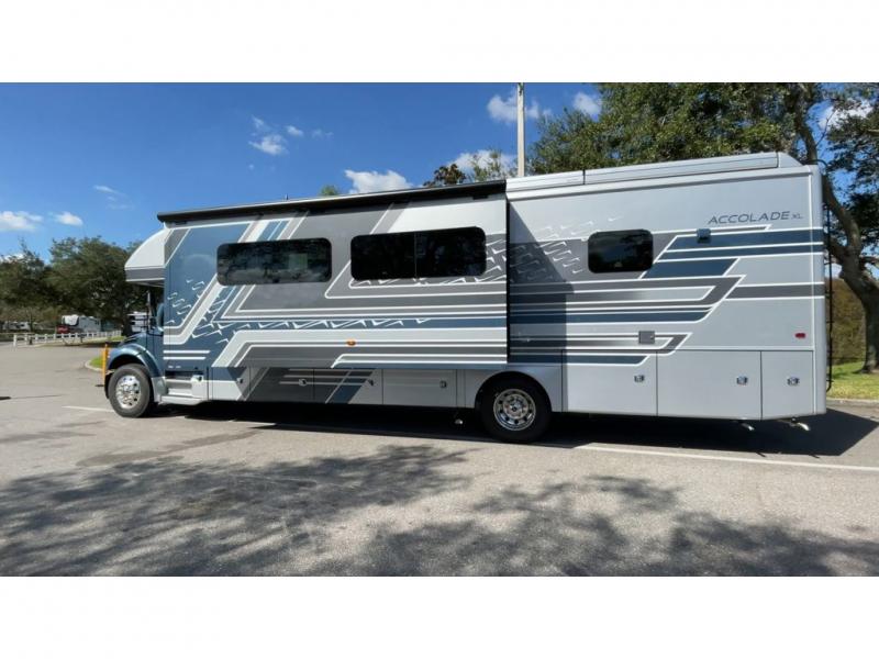 Each one of these luxurious and innovative Entegra Coach Accolade XL Super C diesel motorhomes are built with a Freightliner S2RV chassis! An E-Z Drive Premier package creates a superior ride and handling experience for smooth sailing down the highway. These units are held together by TuffShell vacuum-bond laminated sidewalls and floor, a one-piece, crowned fiberglass roof, and four slick full-body paint options. Dual 15,000 BTU A/C units will keep you cool in the summer, and a 35,000 BTU auto-ignition furnace will keep you warm in the winter. An exterior utility center, outside shower, and exterior entertainment center makes life a little more comfortable at the campsite too. Come choose your favorite model today!