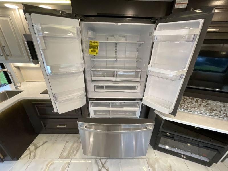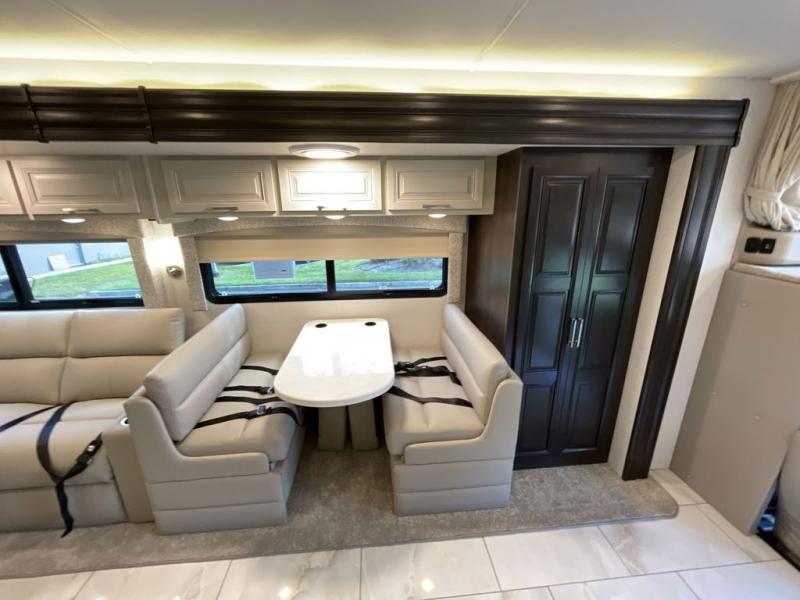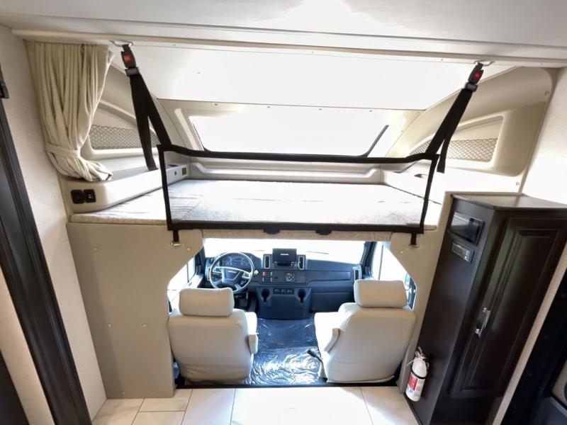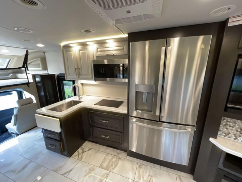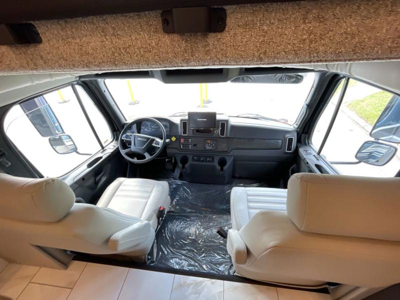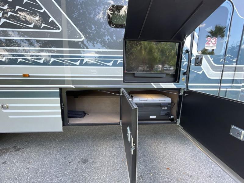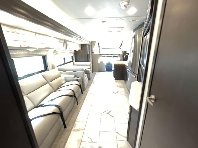 You will appreciate all of the conveniences throughout this motorhome starting with the carpeted, full pass-through storage compartment with lockable slam latch doors! The cockpit has a Sony infotainment center with Apple CarPlay and Android Auto to play your favorite tunes, and a panoramic window with a power shade so you can look out at your beautiful scenery driving down the road then enjoy privacy at night. Once you have reached your destination, you can either relax on the 93" reclining sofa or enjoy a meal at the booth dinette after preparing it with the two burner induction cooktop with LED display. You can also choose an optional free-standing dinette in place of the booth dinette. A private bedroom welcomes you to enjoy a good night's rest on the king bed after showering in the 30" x 36" shower in the full rear bathroom. The bathroom also has an area prepped to add an optional washer and dryer!