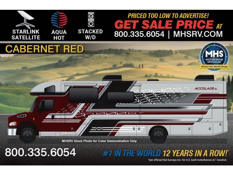 MSRP $434,469. All New Luxury Diesel Super C RV from Entegra Coach! The 2026 Entegra Coach Accolade XL is now available for Sale at Motor Home Specialist; the #1 Volume Selling Motor Home Dealership in the World! The 37L Bunk Model is approximately 39 feet 4 inches in length and features 3 slide-out rooms including a full-wall slide, King size bed, cab over loft, Freightliner® S2RV chassis and a Cummins® 6.7L ISB diesel engine with 360HP. This beautiful RV features the Customer Value Package which includes a 2000 watt inverter, backup & sideview cameras with monitors, convection microwave, roof mounted awning, electric power cord reel, frameless windows, infotainment system, residential refrigerator, Aqua Hot with in-floor heat, and E-Z™ Drive Premier package that provides the superior ride and handling experience travelers have come to expect from Entegra Coach. E-Z™ Drive includes a computer-balanced driveshaft, rear air suspension, heavy-duty rear stabilizer bar, full air brakes, and SACHS brand shocks. Additional options include the stackable washer/dryer, blackout package and Starlink RV Satellite System. The Entegra Accolade XL also boasts an impressive list of standard features including a one-piece fiberglass front cap, full pass through storage compartments with lockable latch doors, exterior entertainment center, large stainless steel sink with sink covers, solid surface countertops with decorative backsplash, water filtration system, variable geometry engine exhaust brake, Michelin® 275/80R 22.5 14 ply tires with Alcoa® aluminum rims, Allison® 3000 MH automatic transmission, TuffShell™ vacuum-bond laminated floor and sidewalls, Dual 15,000-BTU A/C unit with heat pumps, Thetford® Sani-Con Turbo Macerator system, Onan® 8,000-watt diesel generator with auto-gen start, Entrance door with industry’s largest travel-view window, roof-mounted Girard® NOVA II dual-pitched patio awning with LED lights, 9" Sony® infotainment center with Apple CarPlay® and Android Auto™, Backup and side-view cameras, High-intensity recessed LED ceiling lights, Raised-panel high-gloss hardwood cabinetry and stiles throughout with deluxe hidden hinges and much more. At Entegra Coach, excellence doesn't end with stunning interiors and superior craftsmanship. They back each luxury coach with the industry's highest level of service. Entegra Coach's industry leading 2-year limited warranty is double that of most other manufacturers and offers more coverage. **Unit Not California CARB Compliant and Cannot be Registered in California**. Shop hundreds of motorhomes including Super C RVs at 1 location! Choose from Entegra Accolade – Accolade XL – Accolade XT – Esteem XL – Dynamax DX3 – Dynaquest XL – Europa – isata 5 - Thor Magnitude – Magnitude Grand – Omni – Omni Trail – Pasadena – Inception - East to West Bravado – Nexus Ghost – Wraith – Rebel – Verrado and much more. We also sell quality pre-owned models such as Jayco Seneca XT – Seneca – Seneca Prestige - Greyhawk XL – Tiffin Allegro Bay – Newmar Super Star – Supreme Aire – Renegade Veracruz – Valencia – Verona – Verona LE – Explorer – Coachmen Entourage and much more. Visit MHSRV.com for our complete line-up and the sale prices that have made us the #1 volume selling motor home dealership in the world 12 years in a row! For additional details on this unit and our entire inventory including brochures, window sticker, videos, photos, reviews & testimonials as well as additional information about Motor Home Specialist and our manufacturers please visit us at MHSRV.com or call 800-335-6054. At Motor Home Specialist, we DO NOT charge any prep or orientation fees like you will find at other dealerships. All sale prices include a 200-point inspection, interior & exterior wash, detail service and a fully automated high-pressure rain booth test and coach wash that is a standout service unlike that of any other in the industry. You will also receive a thorough coach orientation with an MHSRV technician, a night stay in our delivery park featuring landscaped and covered pads with full hook-ups and much more! Read Thousands upon Thousands of 5-Star Reviews at MHSRV.com and See What They Had to Say About Their Experience at Motor Home Specialist. WHY PAY MORE? WHY SETTLE FOR LESS?