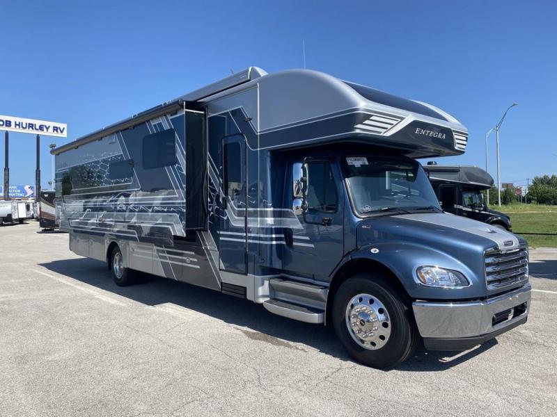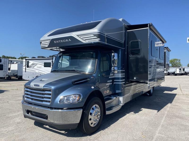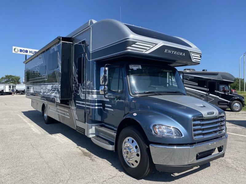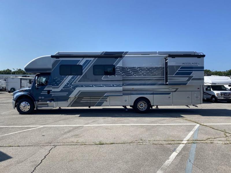 Each one of these luxurious and innovative Entegra Coach Accolade XL Super C diesel motorhomes are built with a Freightliner S2RV chassis! An E-Z Drive Premier package creates a superior ride and handling experience for smooth sailing down the highway. These units are held together by TuffShell vacuum-bond laminated sidewalls and floor, a one-piece, crowned fiberglass roof, and four slick full-body paint options. Dual 15,000 BTU A/C units will keep you cool in the summer, and a 35,000 BTU auto-ignition furnace will keep you warm in the winter. An exterior utility center, outside shower, and exterior entertainment center makes life a little more comfortable at the campsite too. Come choose your favorite model today!
