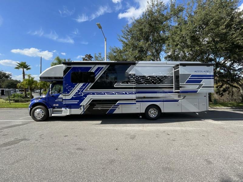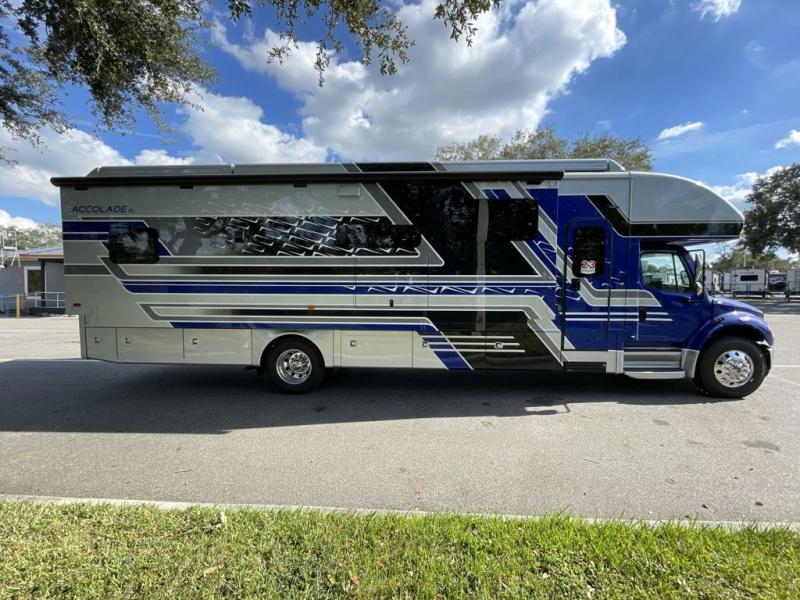 Each one of these luxurious and innovative Entegra Coach Accolade XL Super C diesel motorhomes are built with a Freightliner S2RV chassis! An E-Z Drive Premier package creates a superior ride and handling experience for smooth sailing down the highway. These units are held together by TuffShell vacuum-bond laminated sidewalls and floor, a one-piece, crowned fiberglass roof, and four slick full-body paint options. Dual 15,000 BTU A/C units will keep you cool in the summer, and a 35,000 BTU auto-ignition furnace will keep you warm in the winter. An exterior utility center, outside shower, and exterior entertainment center makes life a little more comfortable at the campsite too. Come choose your favorite model today!