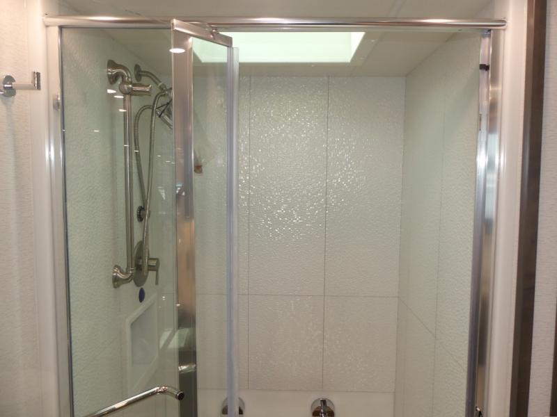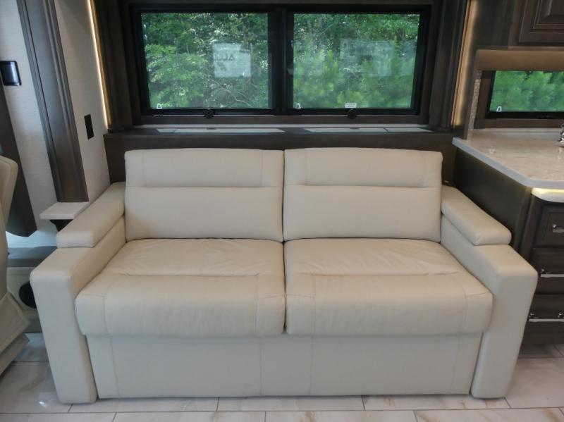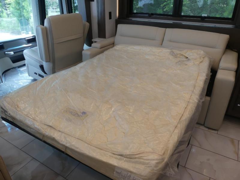 Create unforgettable memories in the comfort of this motorhome! Enjoy a refreshing time in the spacious rear bathroom where you will find a 36” x 23” shower, medicine cabinets, and a large wardrobe, perfect for organizing your best outfits, this unit also has a half bath adding convenience for those times when guests are around. The private bedroom boasts a wardrobe with drawers, a 43” TV and an ample king bed, great for a good night’s sleep. Cooking will be your favorite activity due to all the facilities this RV offers, like the residential refrigerator, pantry, microwave, overhead cabinets, and pantry for dry goods. A 74” hide-a-bed sofa is provided adding more sleep space and entertainment will continue outside thanks to the 43” TV.