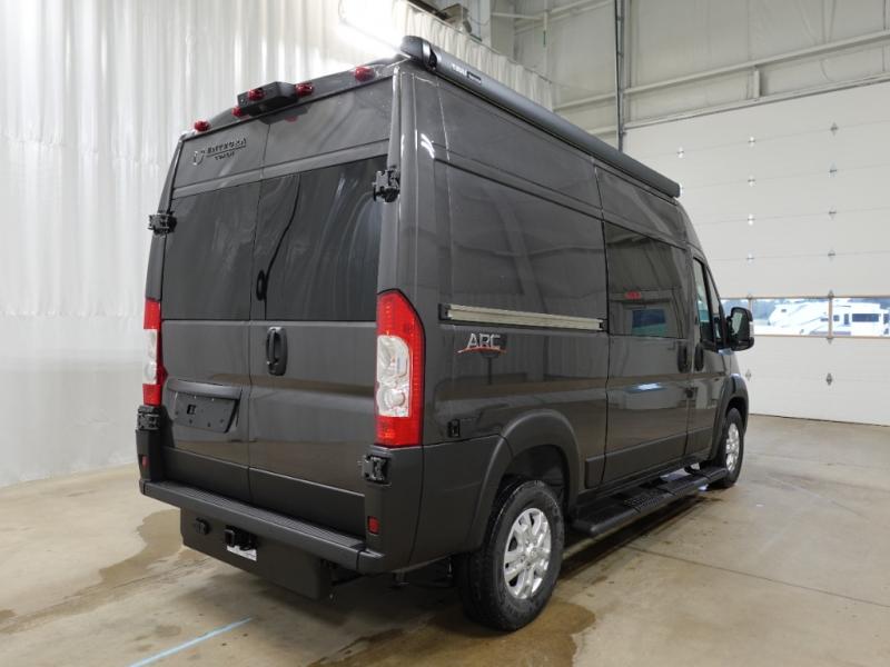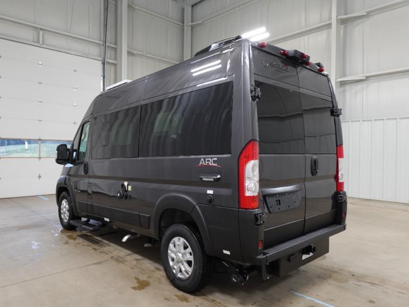 The ARC Class B gas motorhome by Entegra Coach lets you explore the great outdoors in comfort and style! This agile camper van sits on a durable RAM ProMaster 1500 cargo van chassis with a 3.6L V6 24V VVT 276 HP engine, and features an exterior length under 18 feet for easy maneuvering in the city or on open roads. There are custom-molded ABS interior wall panels for added durability, and the LED-lit running boards are sure to be eye-catching. The exterior also includes automatic high-beam headlights, a chrome grille package, and a Thule patio awning with an LED light strip to make your outside time enjoyable. You will appreciate having an Aqua-Hot GEN-1 hydronic water and heating system onboard, along with two 12V AGM house batteries, and a 2,800W gas generator to keep your adventures going. The ARC's interior will have you feeling at home with residential vinyl flooring, high-intensity LED ceiling lights, and decorative window valances with day/night roller shades. There are also convenient cockpit features that include a 10.1" Uconnect 5 NAV infotainment center, a ParkView rear backup camera with dynamic gridlines, a push-button start, and more!