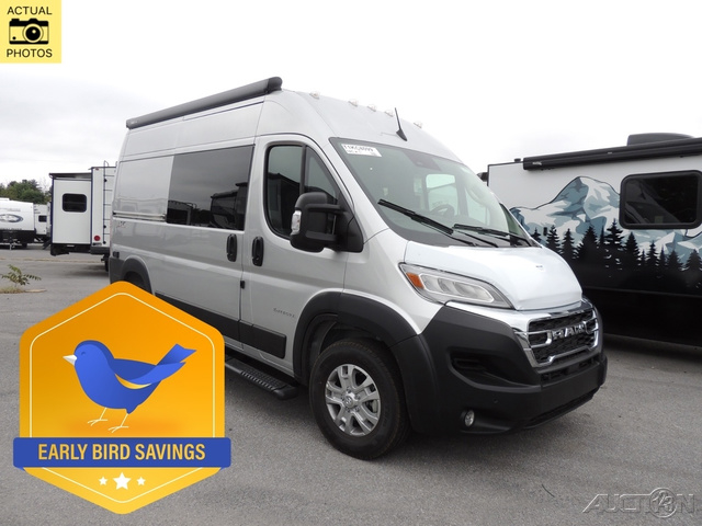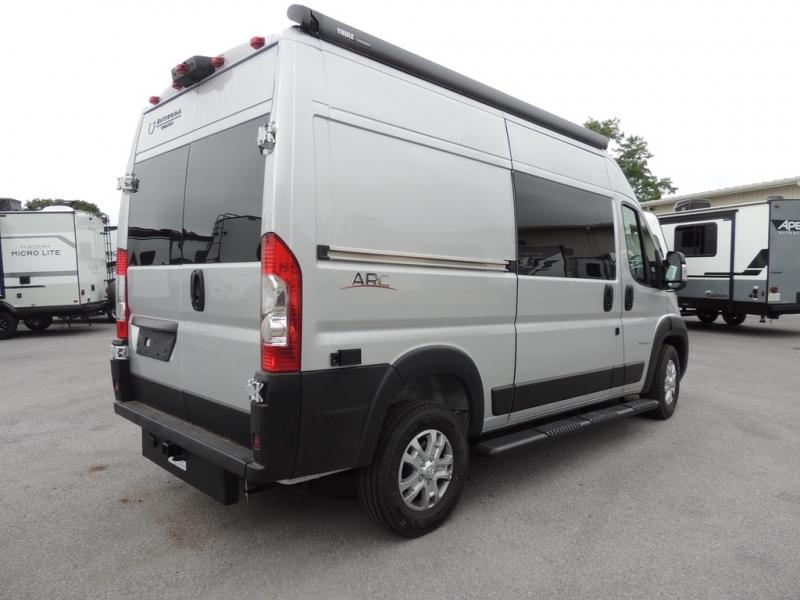 The ARC Class B gas motorhome by Entegra Coach lets you explore the great outdoors in comfort and style! This agile camper van sits on a durable RAM ProMaster 1500 cargo van chassis with a 3.6L V6 24V VVT 276 HP engine, and features an exterior length under 18 feet for easy maneuvering in the city or on open roads. There are custom-molded ABS interior wall panels for added durability, and the LED-lit running boards are sure to be eye-catching. The exterior also includes automatic high-beam headlights, a chrome grille package, and a Thule patio awning with an LED light strip to make your outside time enjoyable. You will appreciate having an Aqua-Hot GEN-1 hydronic water and heating system onboard, along with two 12V AGM house batteries, and a 2,800W gas generator to keep your adventures going. The ARC's interior will have you feeling at home with residential vinyl flooring, high-intensity LED ceiling lights, and decorative window valances with day/night roller shades. There are also convenient cockpit features that include a 10.1" Uconnect 5 NAV infotainment center, a ParkView rear backup camera with dynamic gridlines, a push-button start, and more!