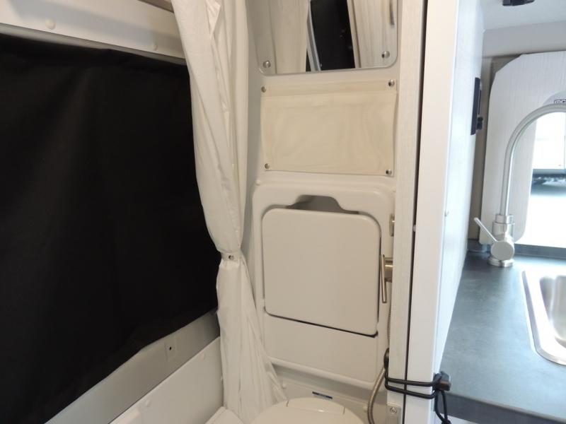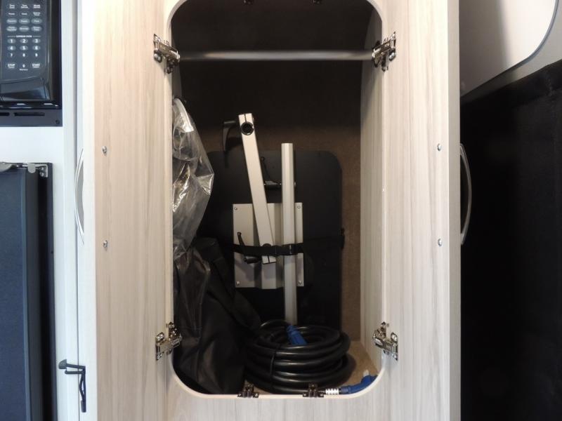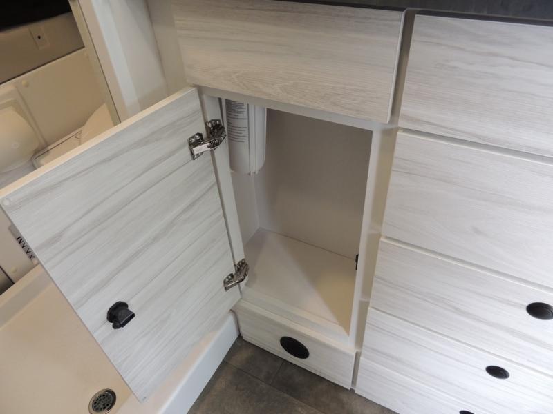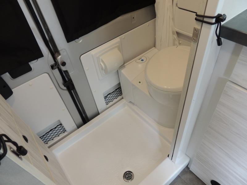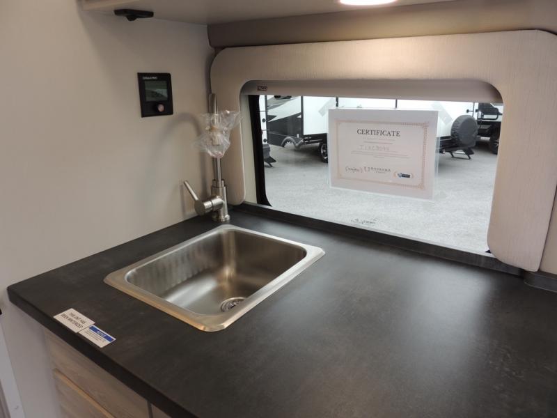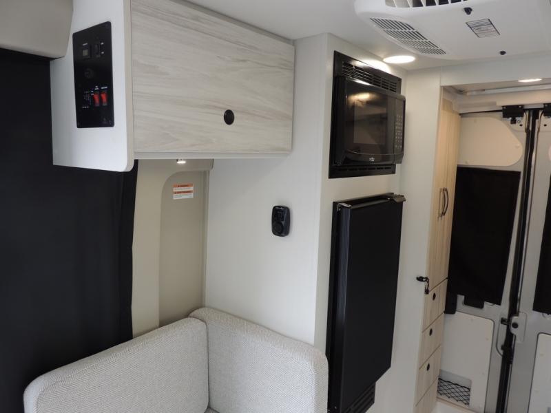 Any trip in this camper van will be spent in comfort thanks to the convenient wet bath and full kitchen amenities. You can whip up a hearty breakfast on the portable induction cooktop or use the microwave oven. There is a stainless steel sink to clean up, and the pressed countertops will be easy to clean. After you've hiked for the day and gotten cleaned up in the rear wet bath, you can relax on the 54" sofa that will convert to a 54" x 72" bed. There is also a 27" bench seat for more seating space and plenty of overhead cabinets for personal belongings, board games and more.
