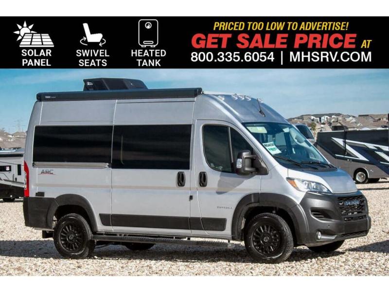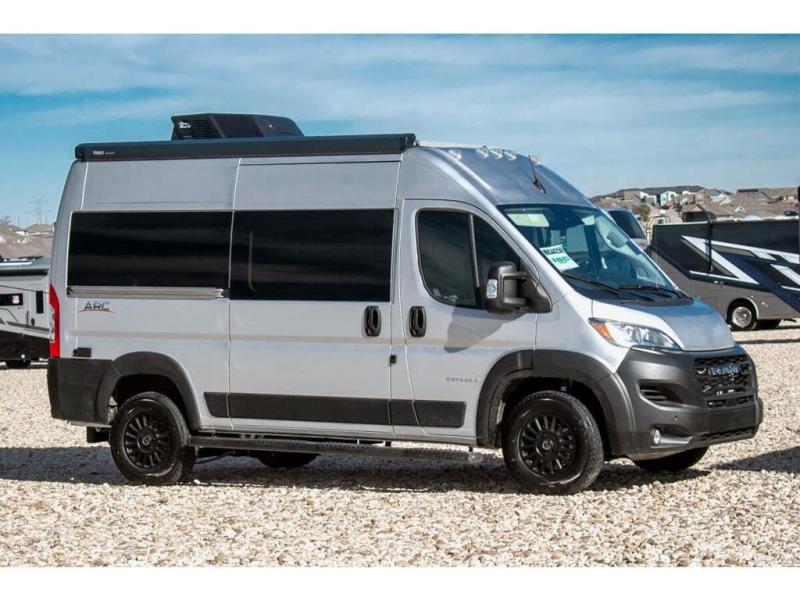 The ARC Class B gas motorhome by Entegra Coach lets you explore the great outdoors in comfort and style! This agile camper van sits on a durable RAM ProMaster 1500 cargo van chassis with a 3.6L V6 24V VVT 276 HP engine, and features an exterior length under 18 feet for easy maneuvering in the city or on open roads. There are custom-molded ABS interior wall panels for added durability, and the LED-lit running boards are sure to be eye-catching. The exterior also includes automatic high-beam headlights, a chrome grille package, and a Thule patio awning with an LED light strip to make your outside time enjoyable. You will appreciate having an Aqua-Hot GEN-1 hydronic water and heating system onboard, along with two 12V AGM house batteries, and a 2,800W gas generator to keep your adventures going. The ARC's interior will have you feeling at home with residential vinyl flooring, high-intensity LED ceiling lights, and decorative window valances with day/night roller shades. There are also convenient cockpit features that include a 10.1" Uconnect 5 NAV infotainment center, a ParkView rear backup camera with dynamic gridlines, a push-button start, and more!