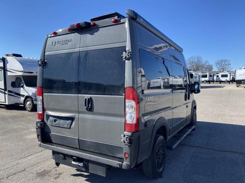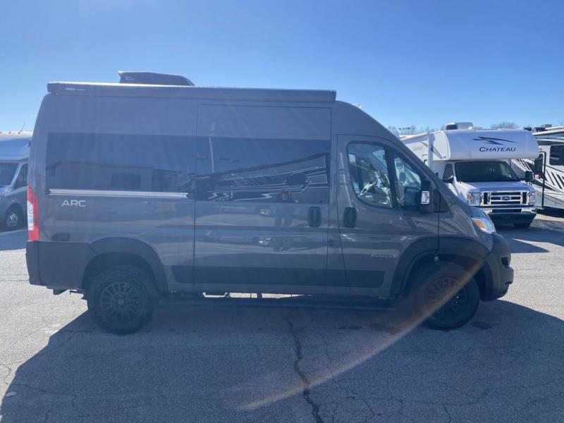 The ARC Class B gas motorhome by Entegra Coach lets you explore the great outdoors in comfort and style! This agile camper van sits on a durable RAM ProMaster 1500 cargo van chassis with a 3.6L V6 24V VVT 276 HP engine, and features an exterior length under 18 feet for easy maneuvering in the city or on open roads. There are custom-molded ABS interior wall panels for added durability, and the LED-lit running boards are sure to be eye-catching. The exterior also includes automatic high-beam headlights, a chrome grille package, and a Thule patio awning with an LED light strip to make your outside time enjoyable. You will appreciate having an Aqua-Hot GEN-1 hydronic water and heating system onboard, along with two 12V AGM house batteries, and a 2,800W gas generator to keep your adventures going. The ARC's interior will have you feeling at home with residential vinyl flooring, high-intensity LED ceiling lights, and decorative window valances with day/night roller shades. There are also convenient cockpit features that include a 10.1" Uconnect 5 NAV infotainment center, a ParkView rear backup camera with dynamic gridlines, a push-button start, and more!